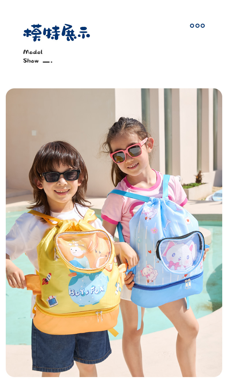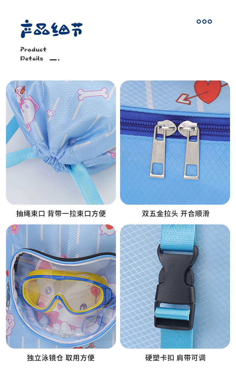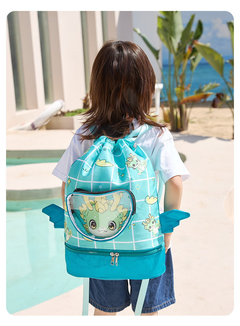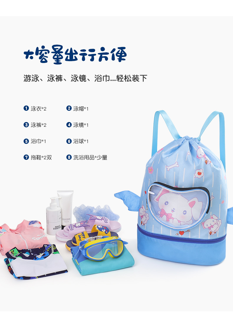 【萌趣卡通,夏季玩水游泳装备收纳】儿童游泳包 干湿分离 防水收纳袋 男女童便携背包 可爱卡通沙滩双肩包-QQ