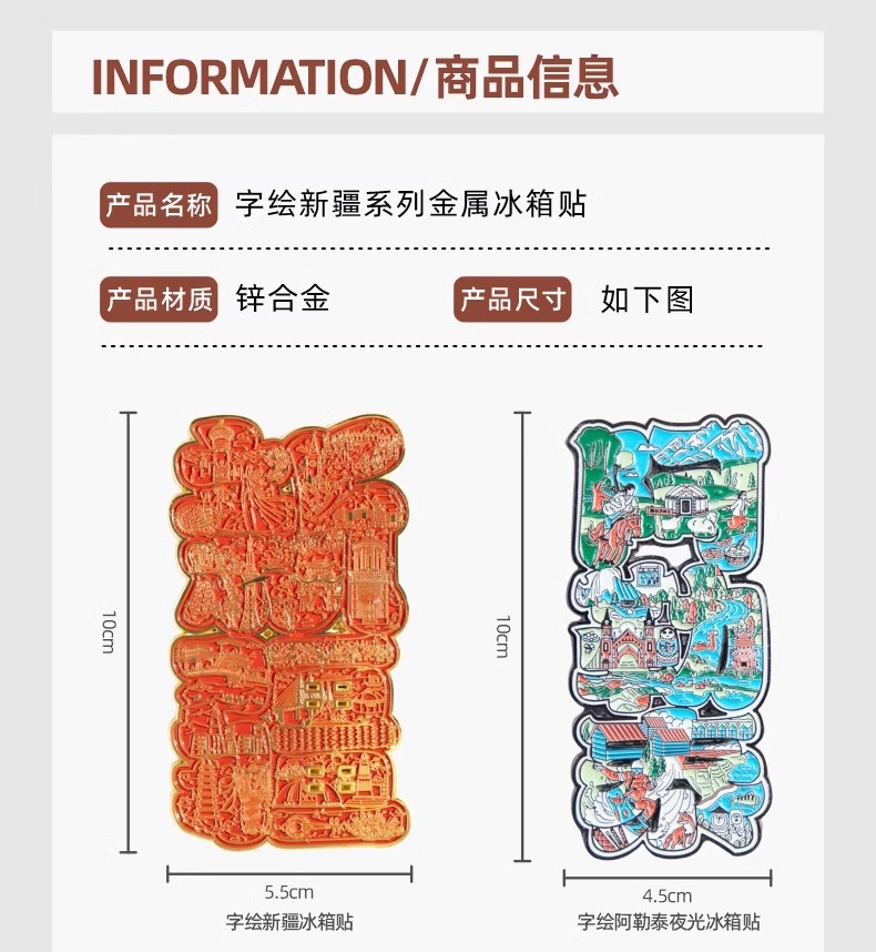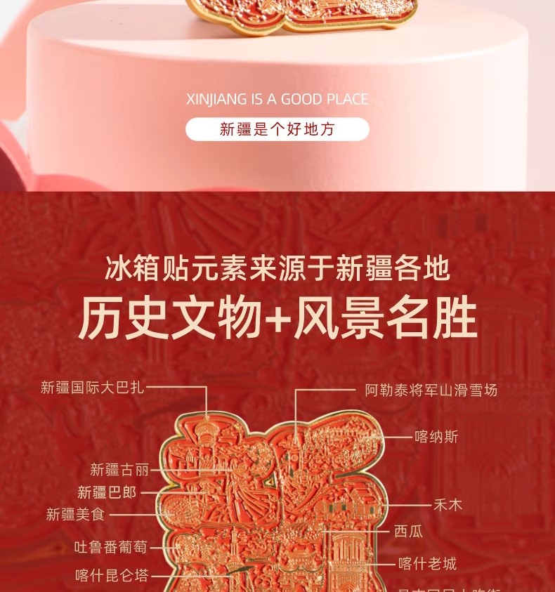 至爱疆物·新疆字绘冰箱贴 历史文物+风景名胜 满满的新疆元素