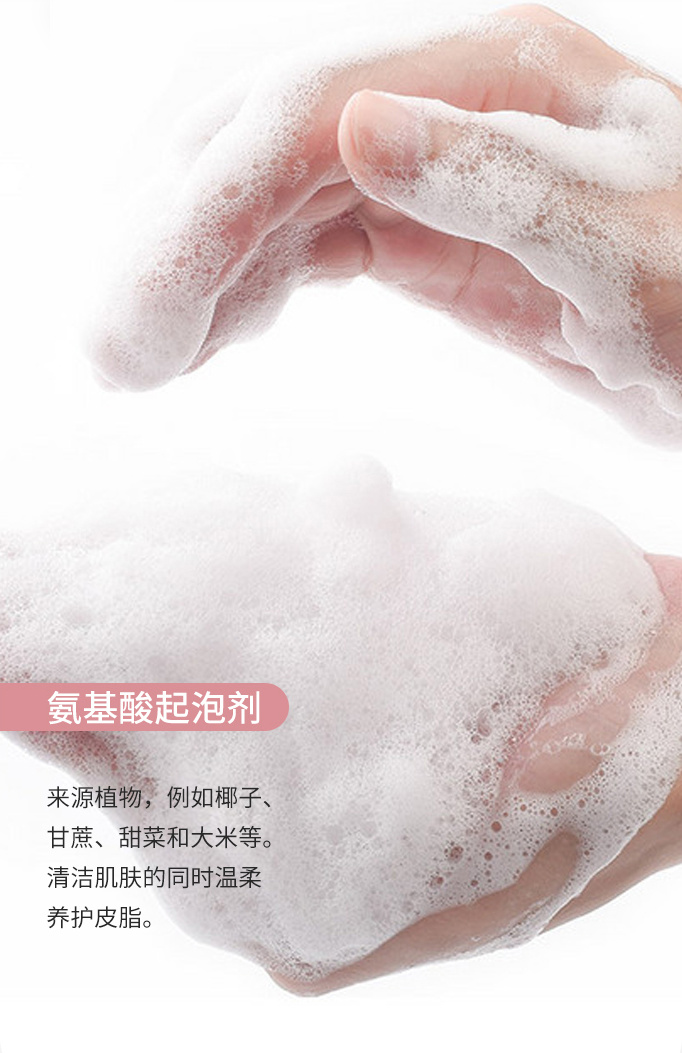 原料来源于椰子油,产生的泡沫细腻,对皮肤和眼睛的刺激性较低,并有一定保湿效果,在清洁时有助于保持皮肤水分。
