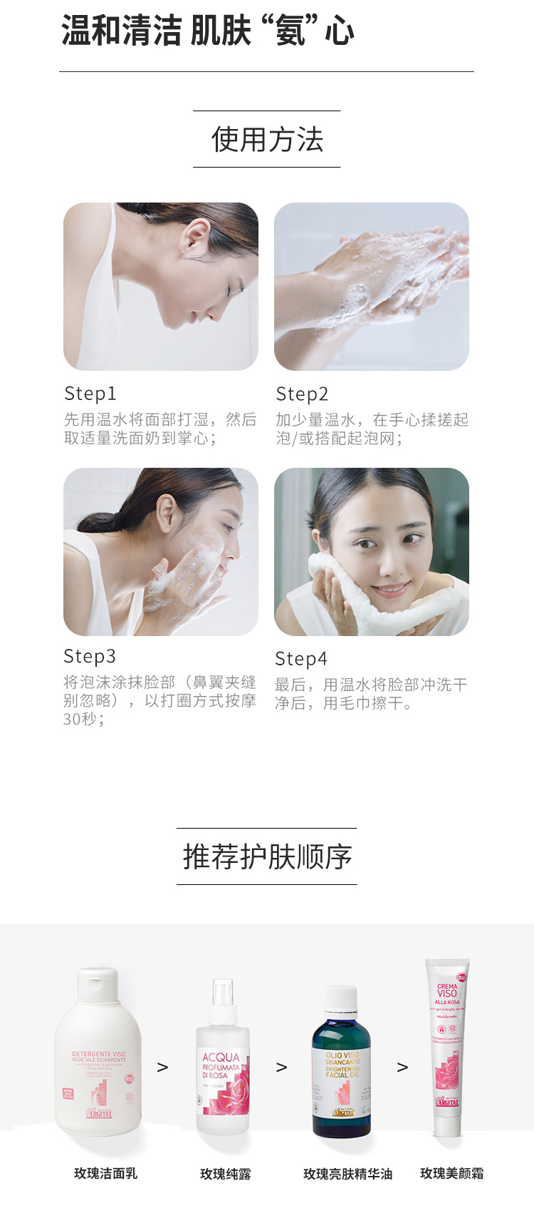 提升洁面后皮肤白皙、柔软和光滑感。同时替代人工香精,给予洗面奶天然精油的香气。