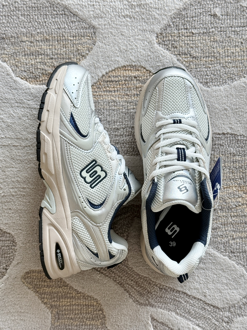 好今年还没有拥有的yi定要入一双~非常经典的设计,实在是太百搭了!饱满、立体,不软塌有韧性的鞋型,鞋头圆润内敛,尤其显脚小,比一般的运动鞋更秀气,表面不同材质层叠拼接的结构感,层次感立显,非常有质感~还特意做了做旧擦灰的效果,更加复古,时髦有调性,不论是阔腿裤、直筒裤都很好搭,还能立马拉长身材比例!