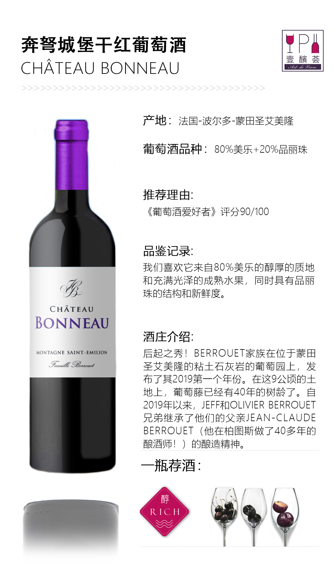 【精品推荐】法国 奔弩城堡干红 2019 蒙丹圣爱美隆