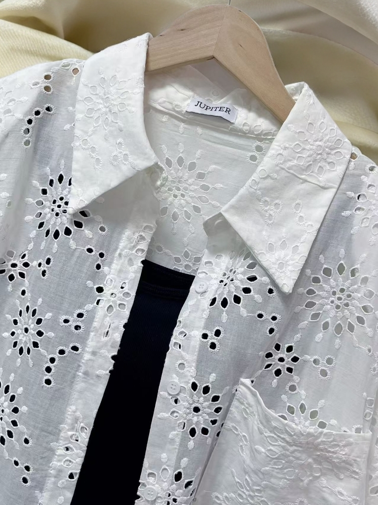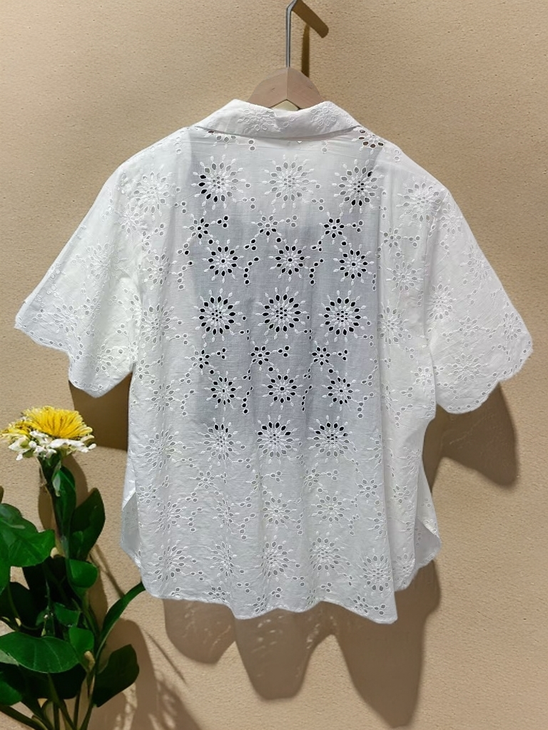 七夕福利-NO退【超值新品】垫肩可拆-重工镂空刺绣翻领宽松大版上衣(不含吊带)-喜出
