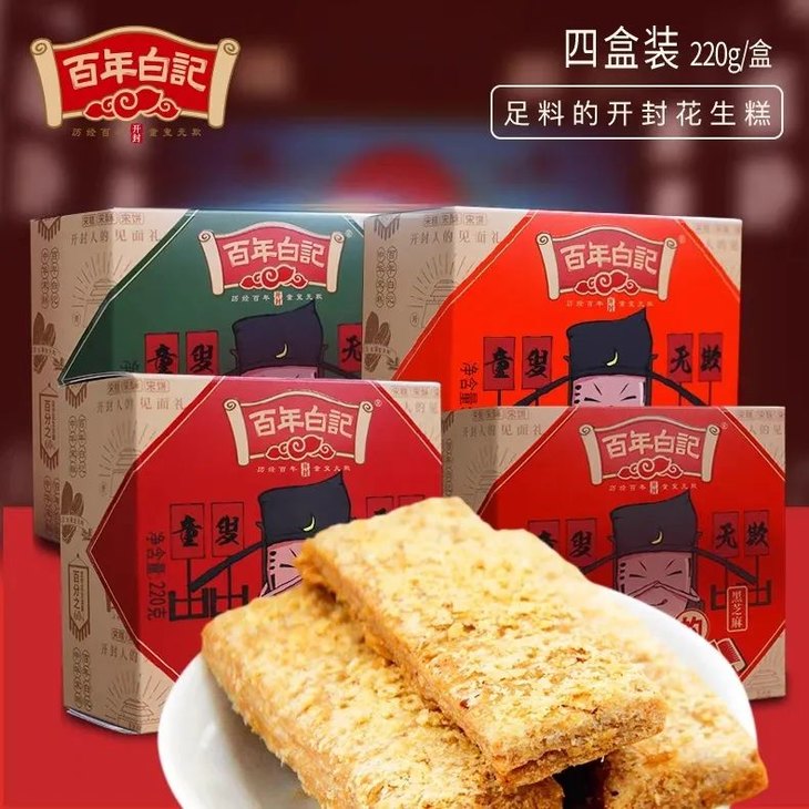 【品牌直发】董宇hui直播间推荐的河南人的见面礼,特价47抢4盒,口口酥香的【百年白记食品花生糕】,传承四代,历经110年,花生糕品类唯一的河南老字号。