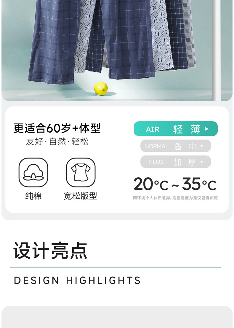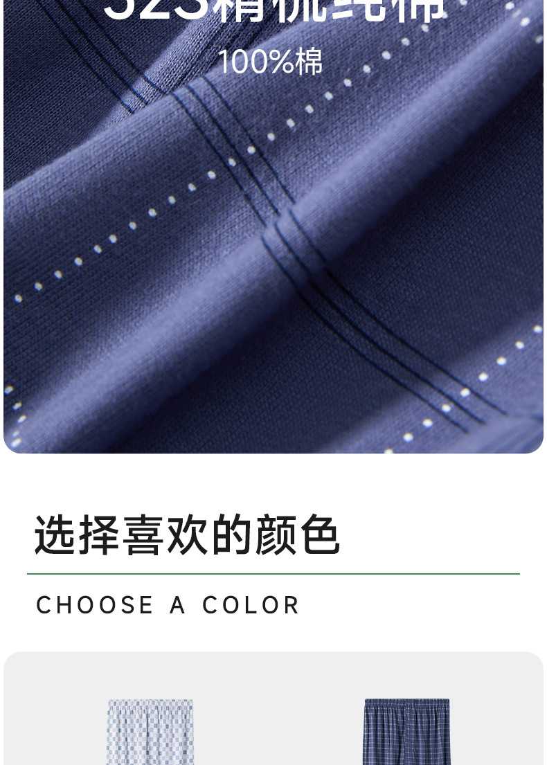 雀说 纯棉睡裤男春秋薄款全棉家居裤1673