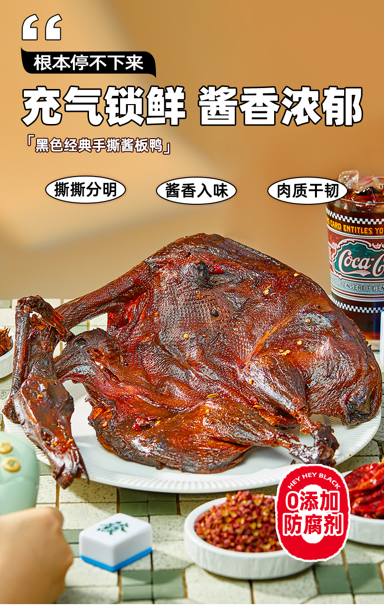 【送礼推荐】黑色经典酱板鸭368g/袋 精选老麻鸭 自榨纯麻油炭烤