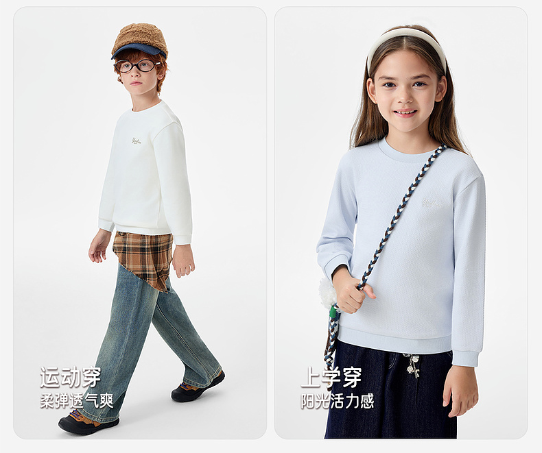 英氏儿童卫衣圆领春秋休闲百搭女童叠穿保暖卫衣男童流行2025
