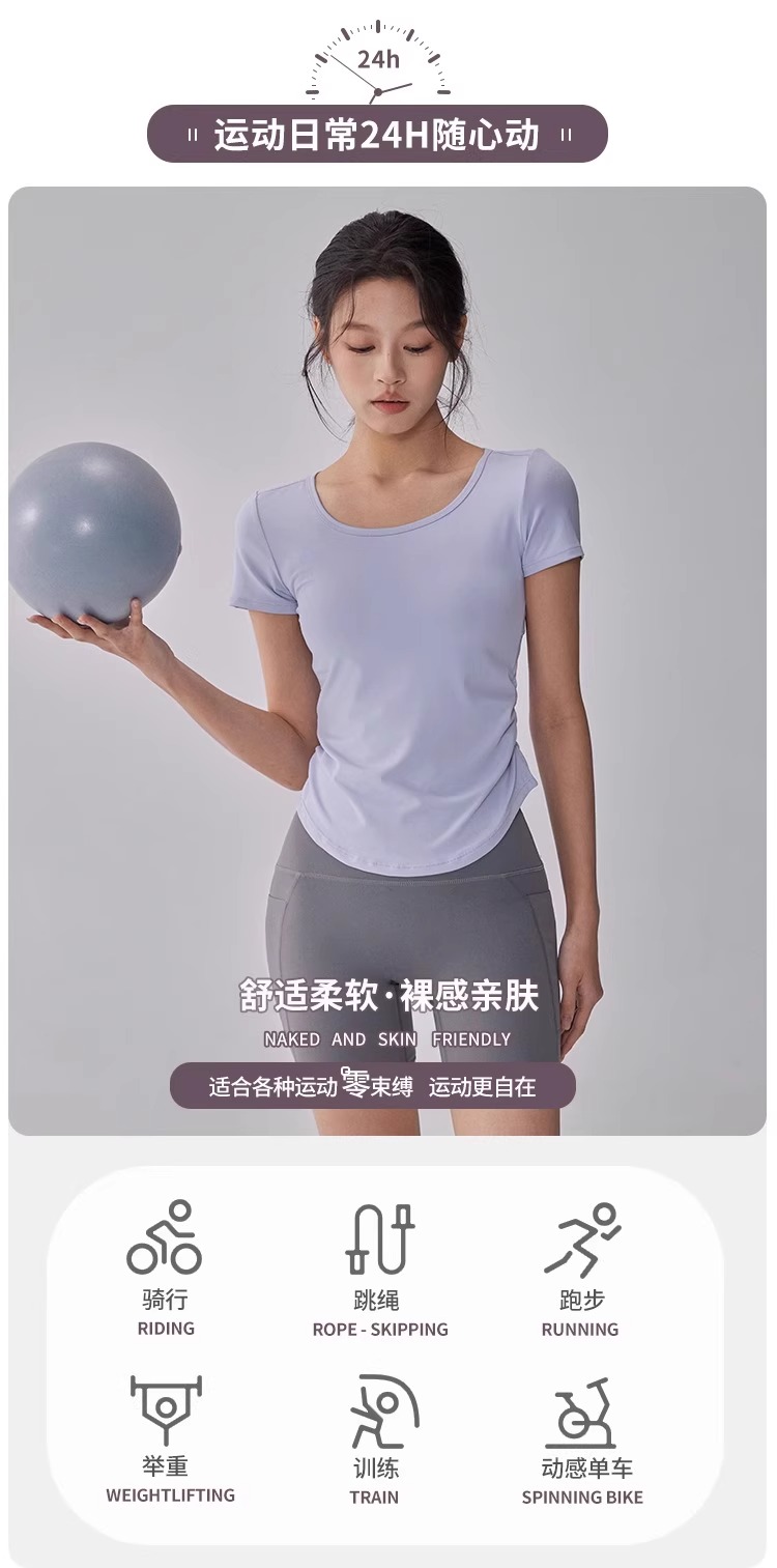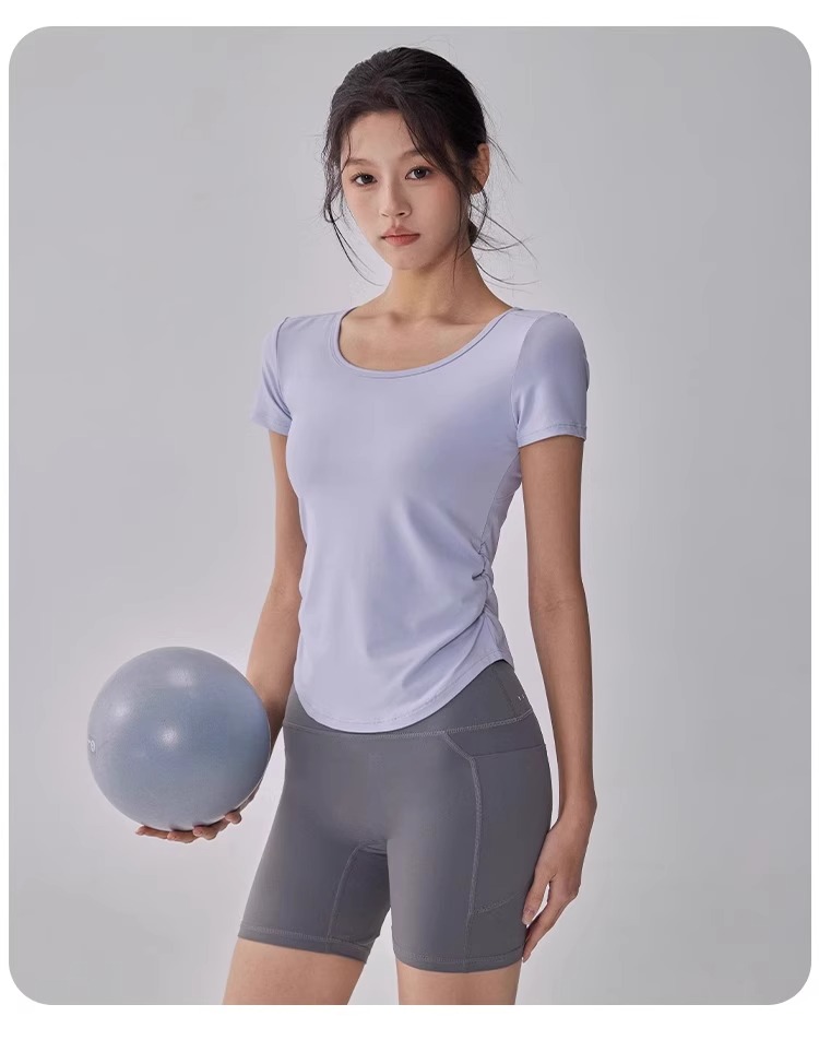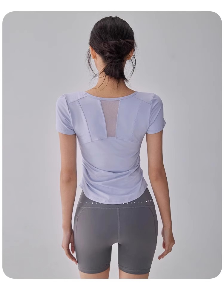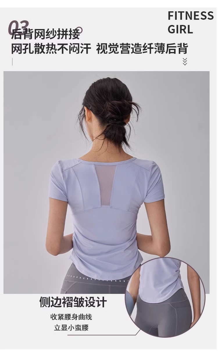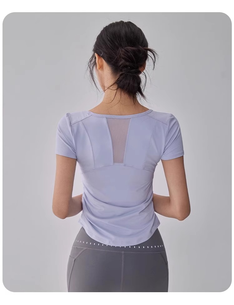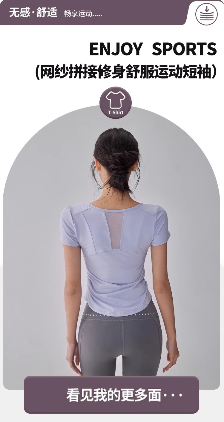 【限时秒】YOGACODE【火树银花系列】瑜伽服短袖T恤女网纱拼接透气运动上衣DWY115119