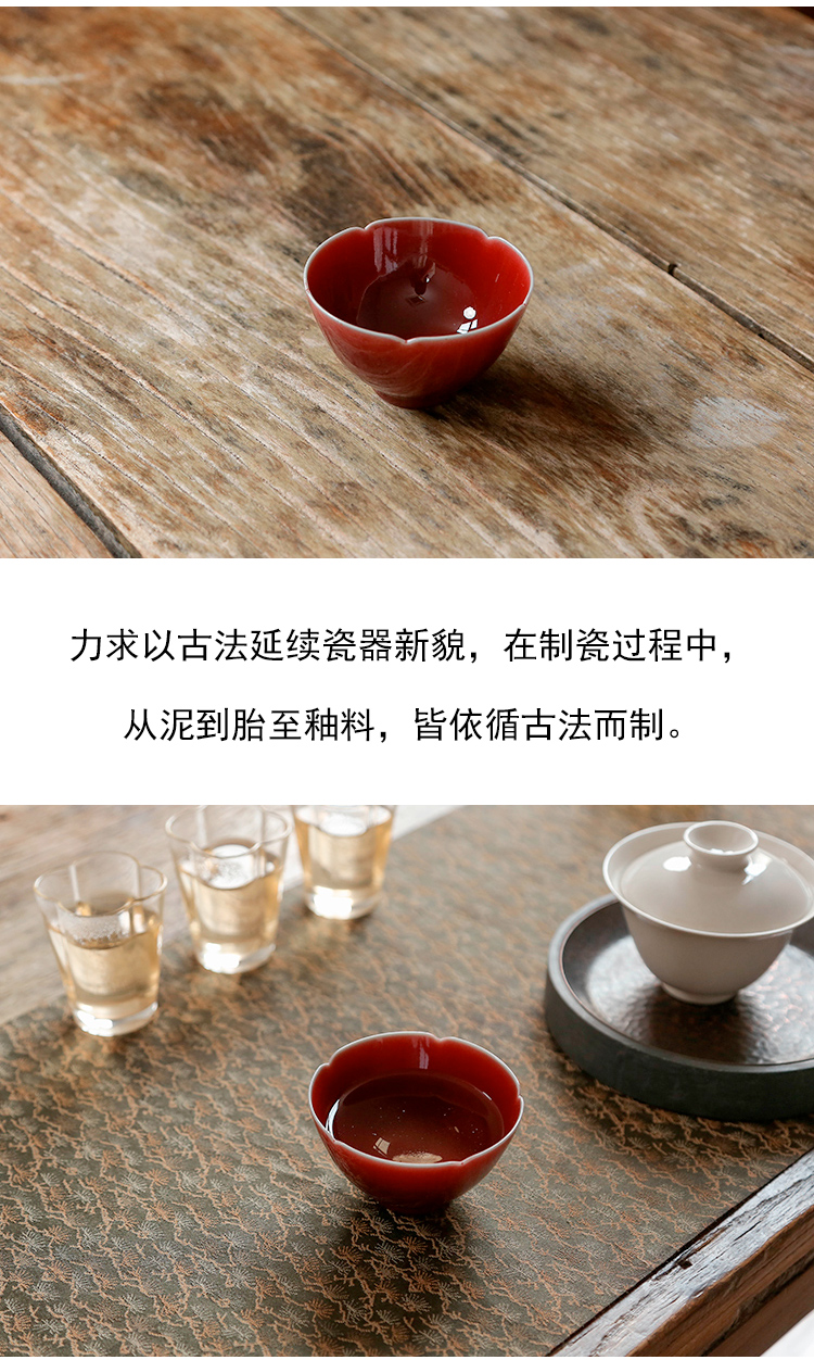 茶香记 80ml南山夏原矿郎红葵口鸡心杯传统颜色釉手工茶杯主人杯