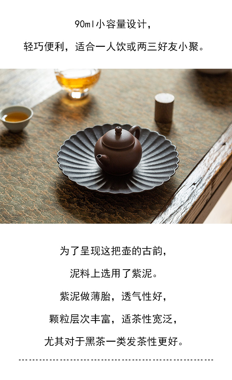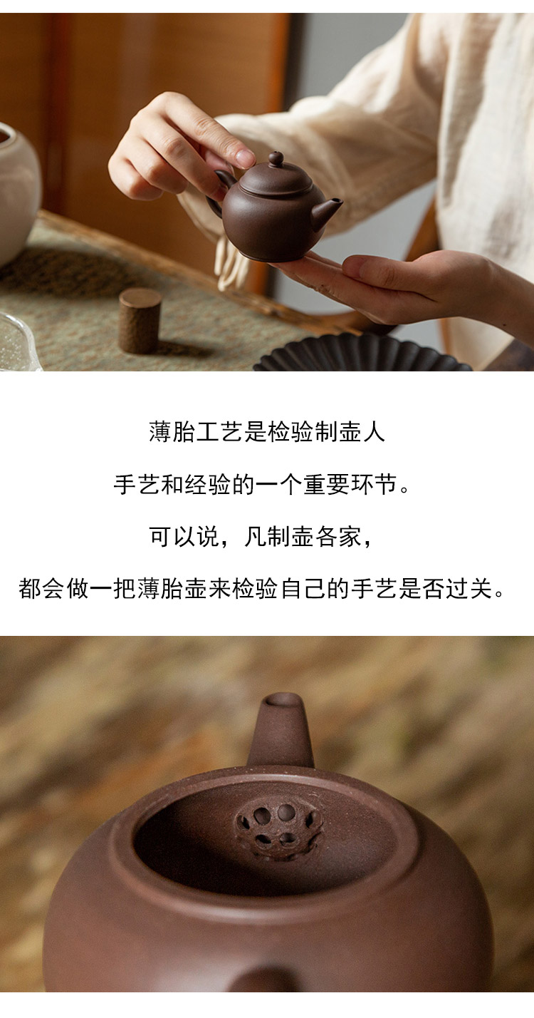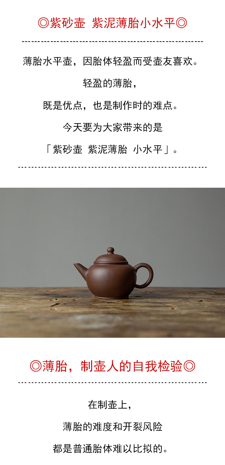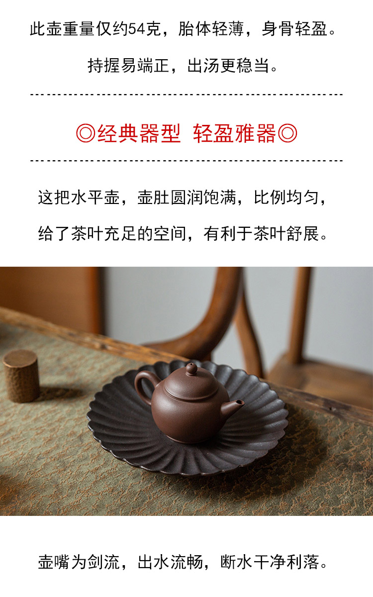 茶香记 紫砂壶 紫泥薄胎小水平 茶壶 身骨轻盈 功夫茶具