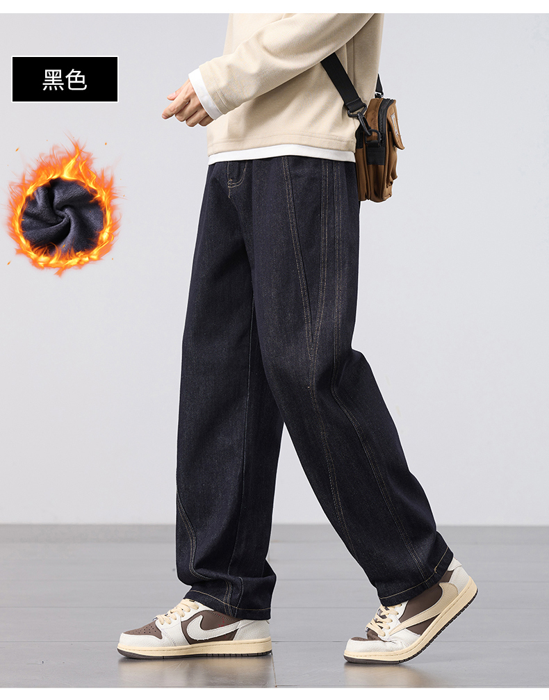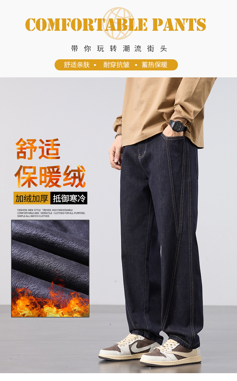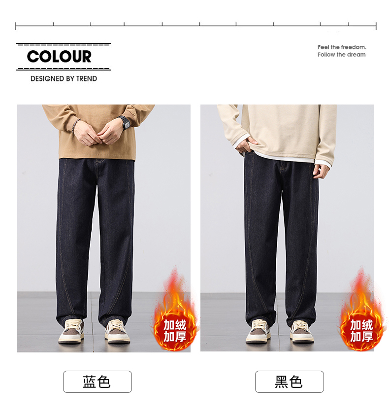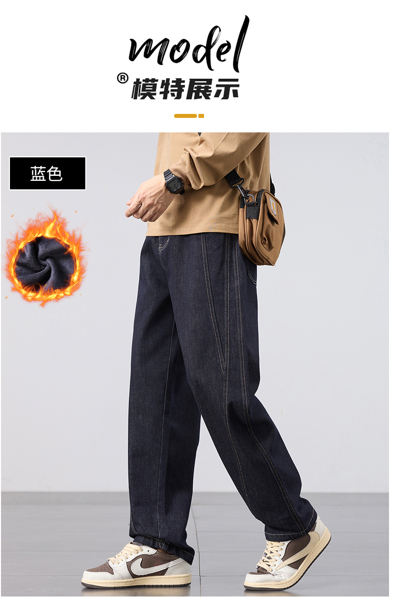 【秋冬保暖不臃肿 常规/加绒款可选】耐磨抗皱直筒牛仔裤 常规/加绒