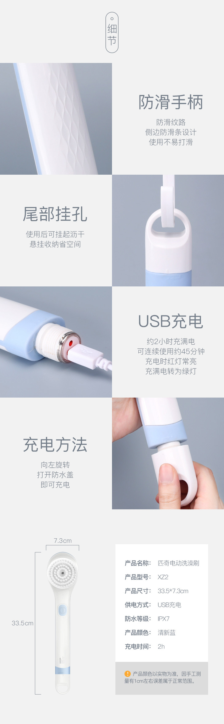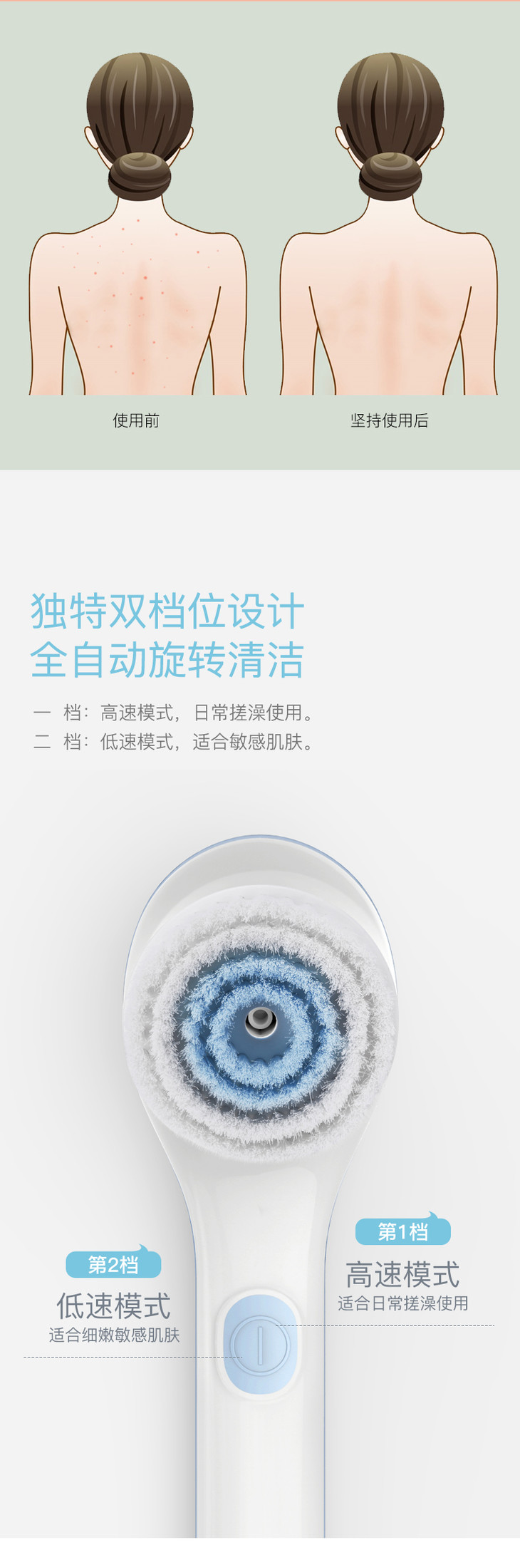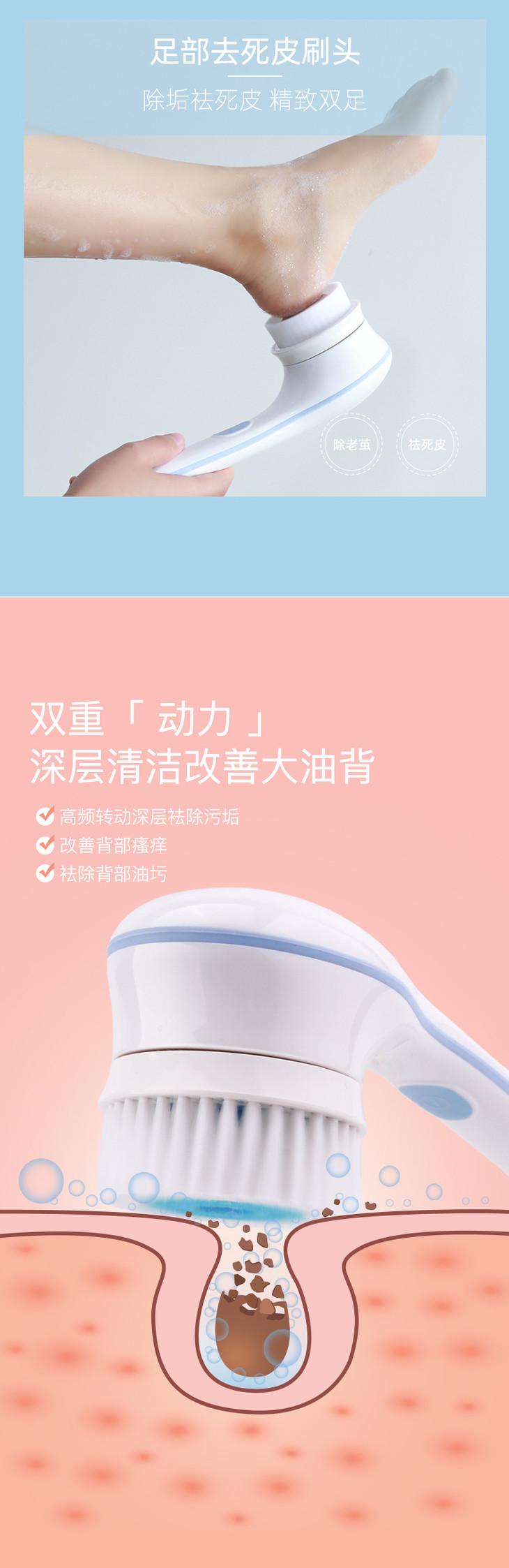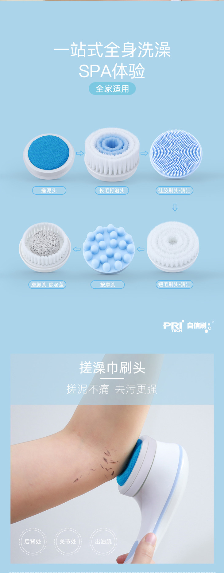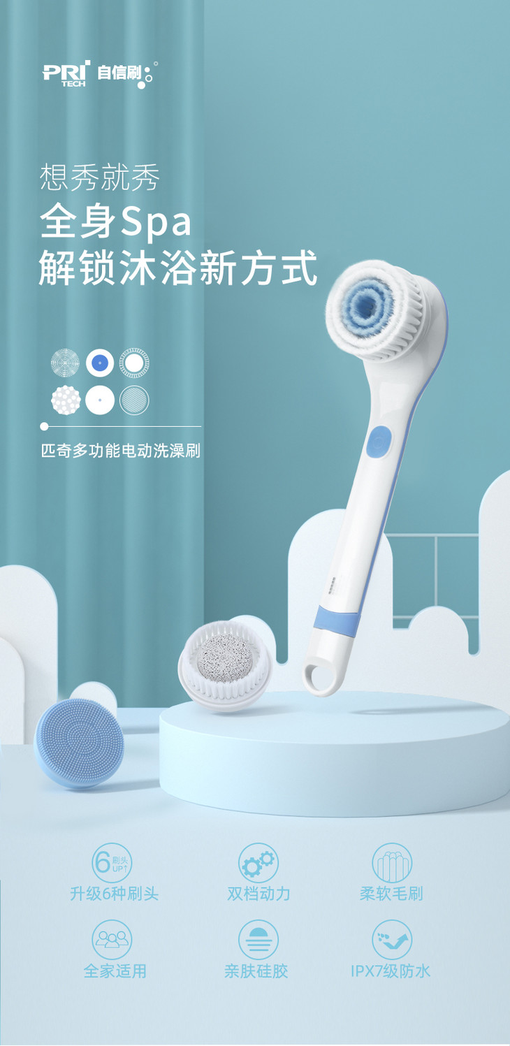 【洗澡不求人】匹奇第二代电动洗澡刷搓澡神器搓澡仪电动搓澡刷搓泥搓背