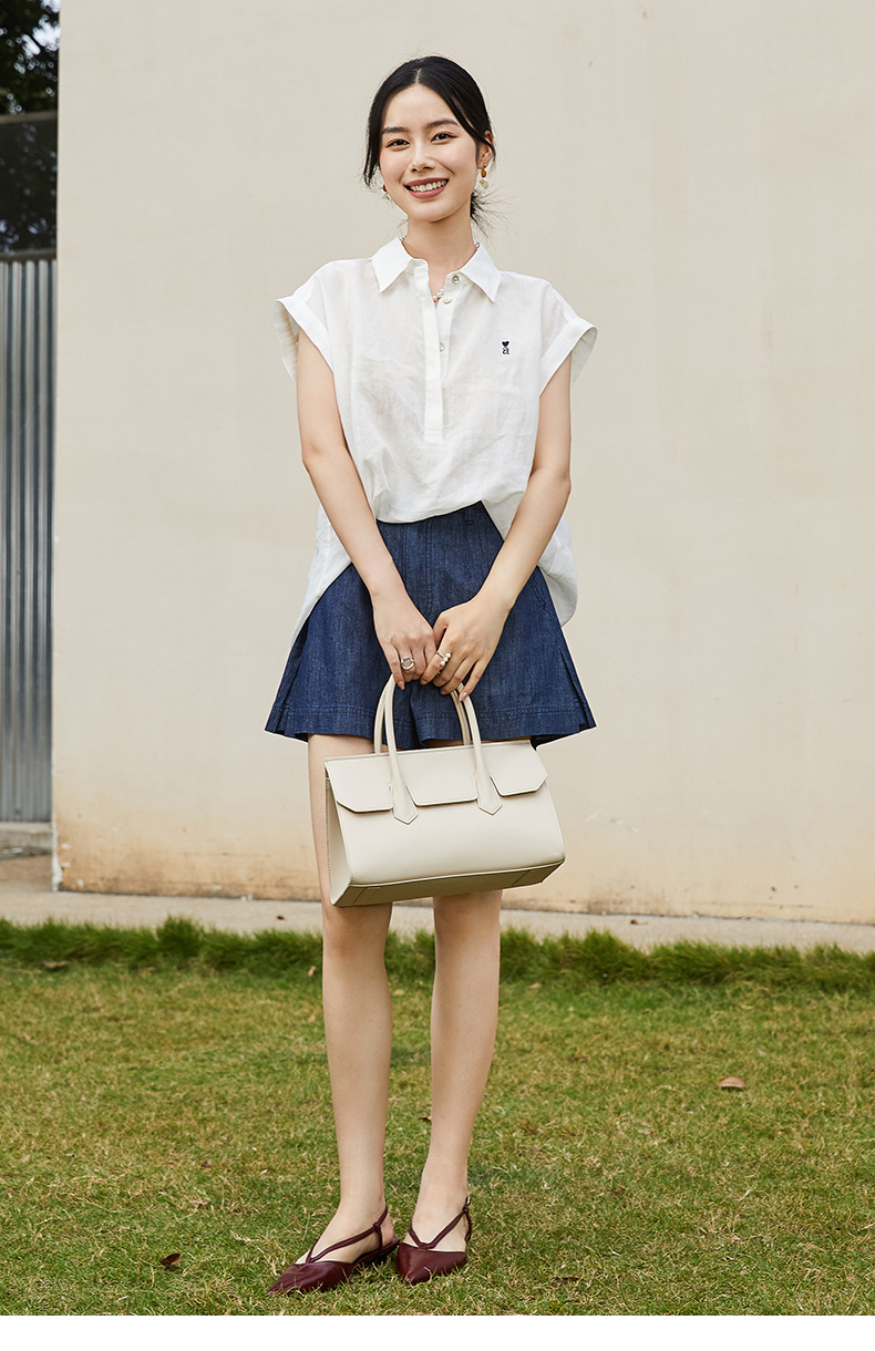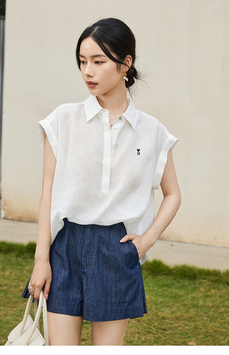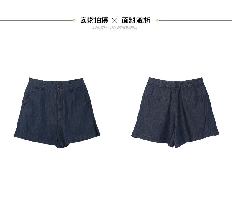 极简通勤高腰半松紧腰牛仔短裤 天丝棉透气薄款 夏季宽松 A 字阔腿开叉显瘦热裤