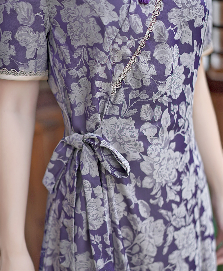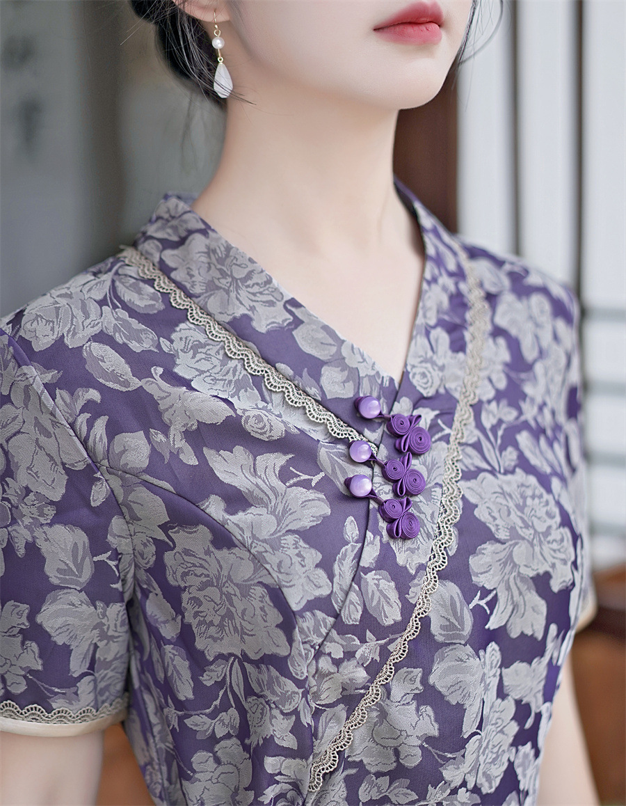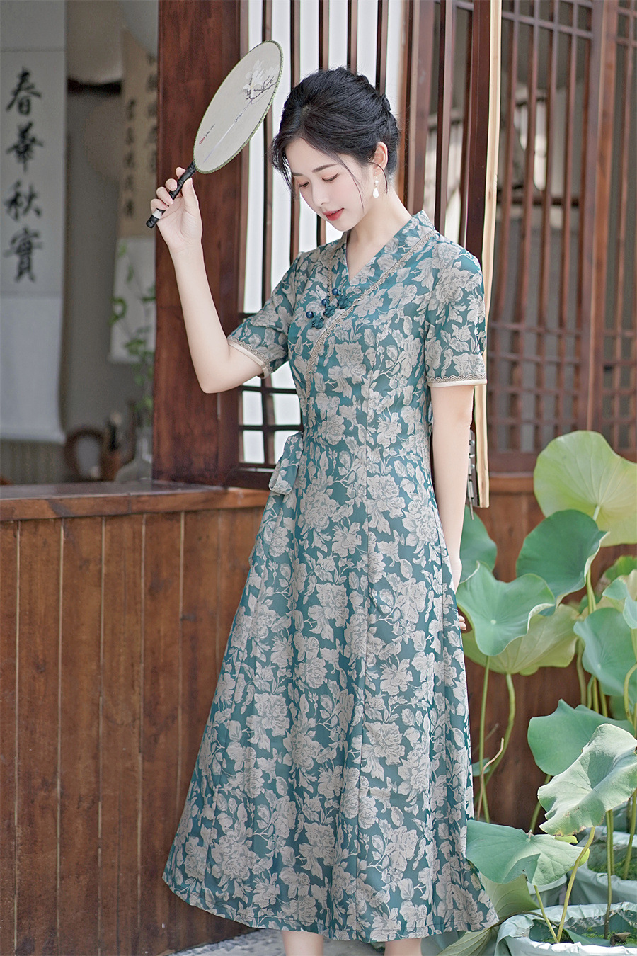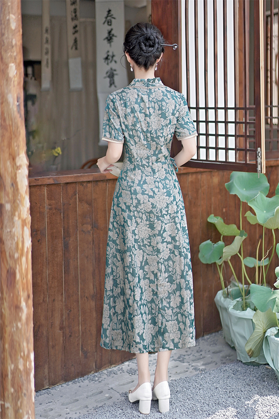 GX现代时尚改良新中式长款旗袍连衣裙2023夏新款低领日常旗袍大摆裙