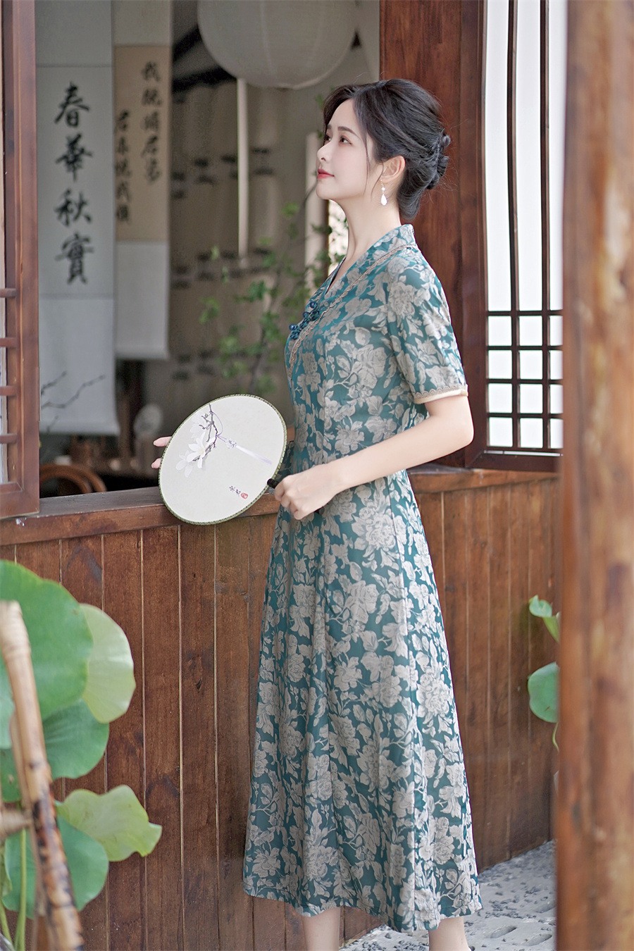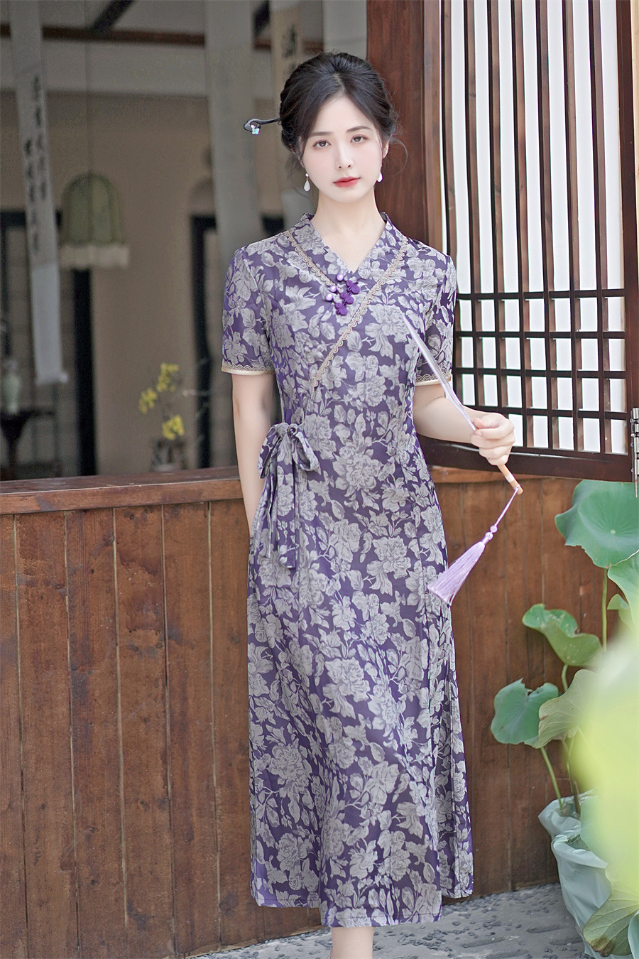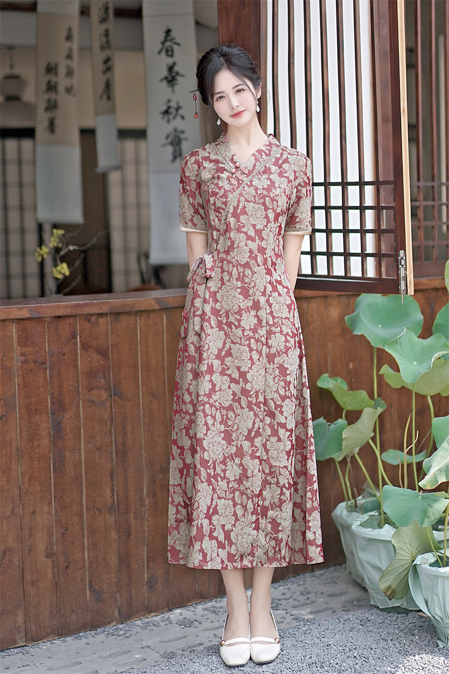 GX现代时尚改良新中式长款旗袍连衣裙2023夏新款低领日常旗袍大摆裙