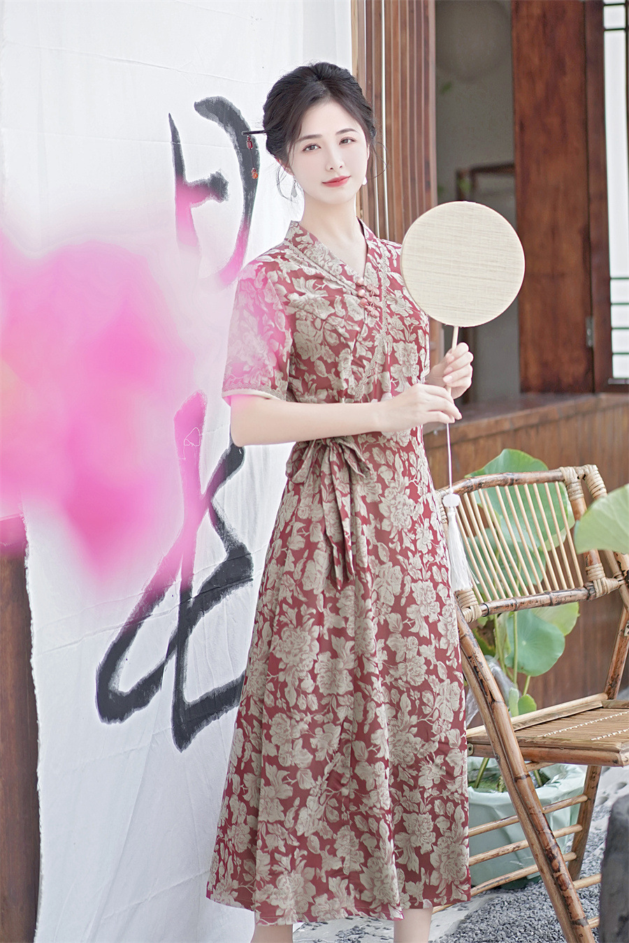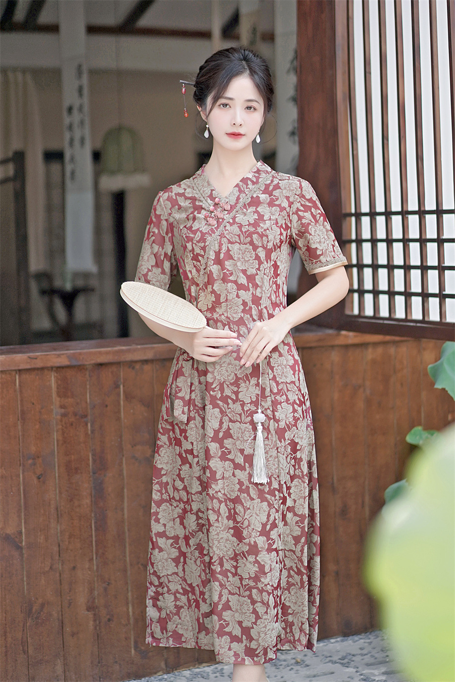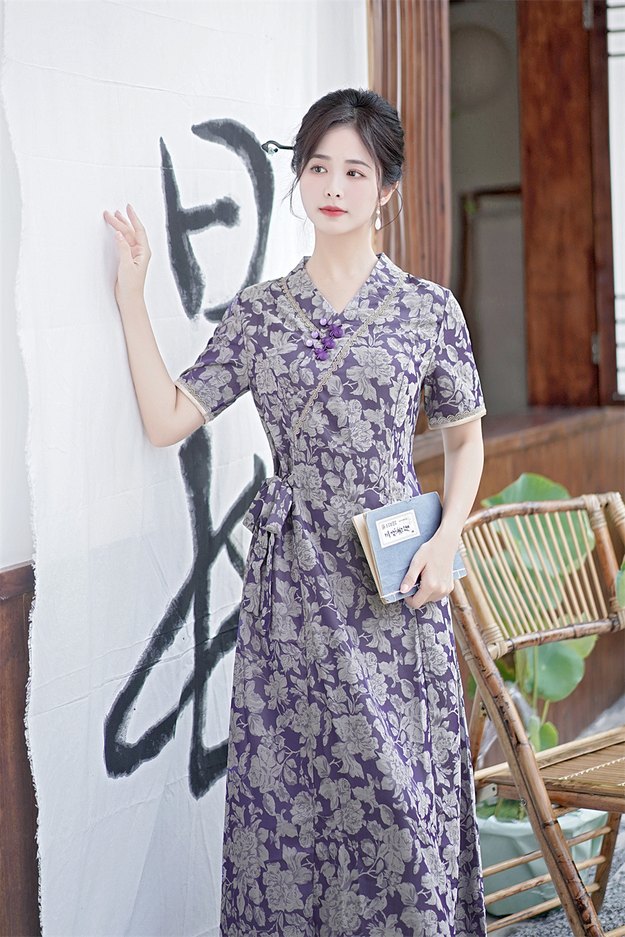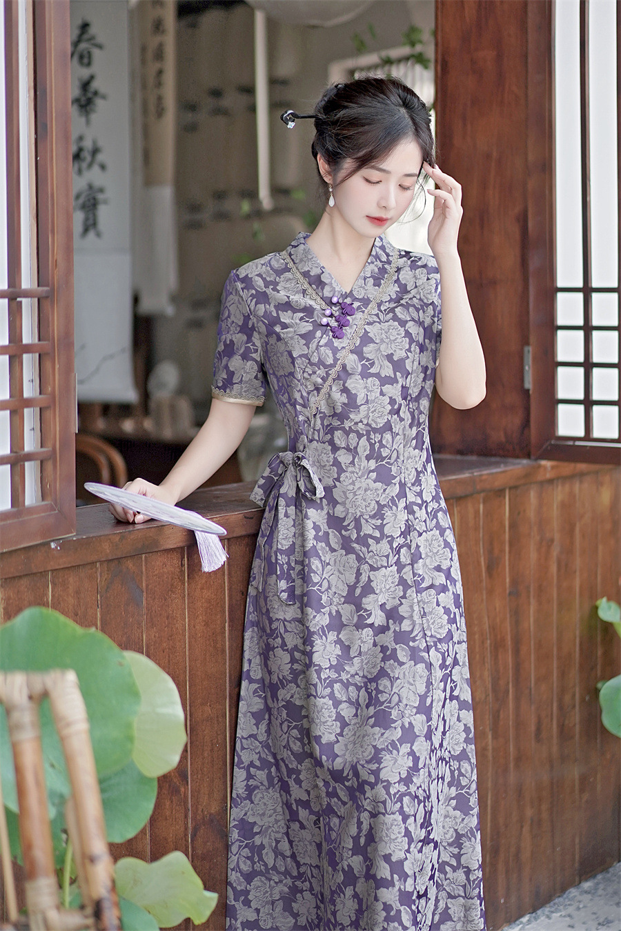 GX现代时尚改良新中式长款旗袍连衣裙2023夏新款低领日常旗袍大摆裙