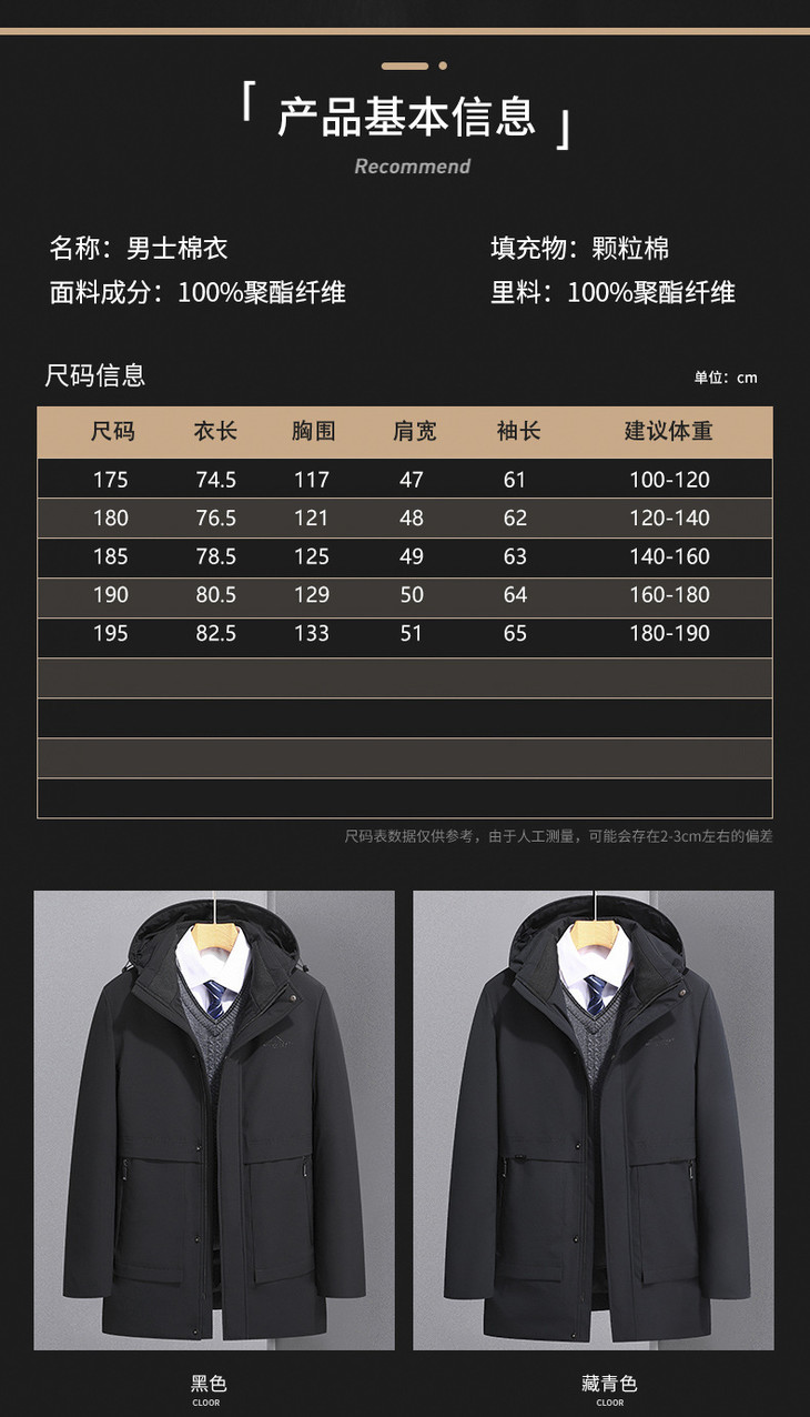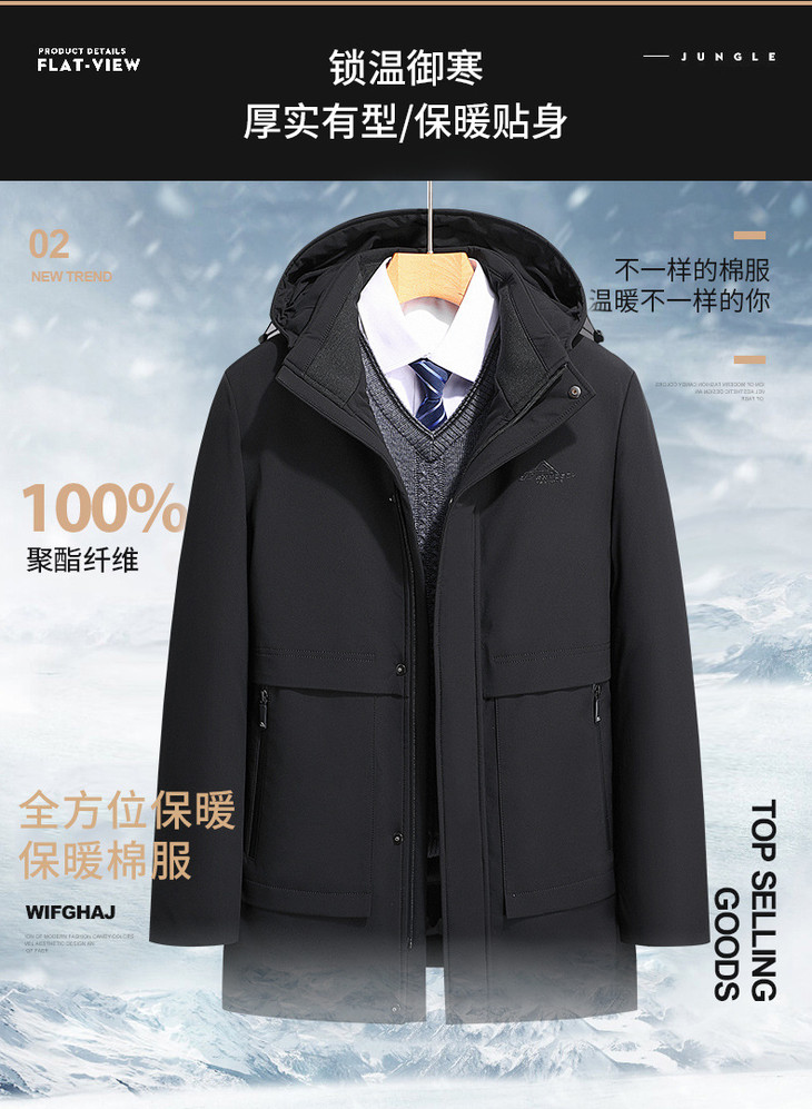 2022冬季新款中老年羽绒棉服连帽男中长款爸爸装加厚休闲中年外套WMM-9902