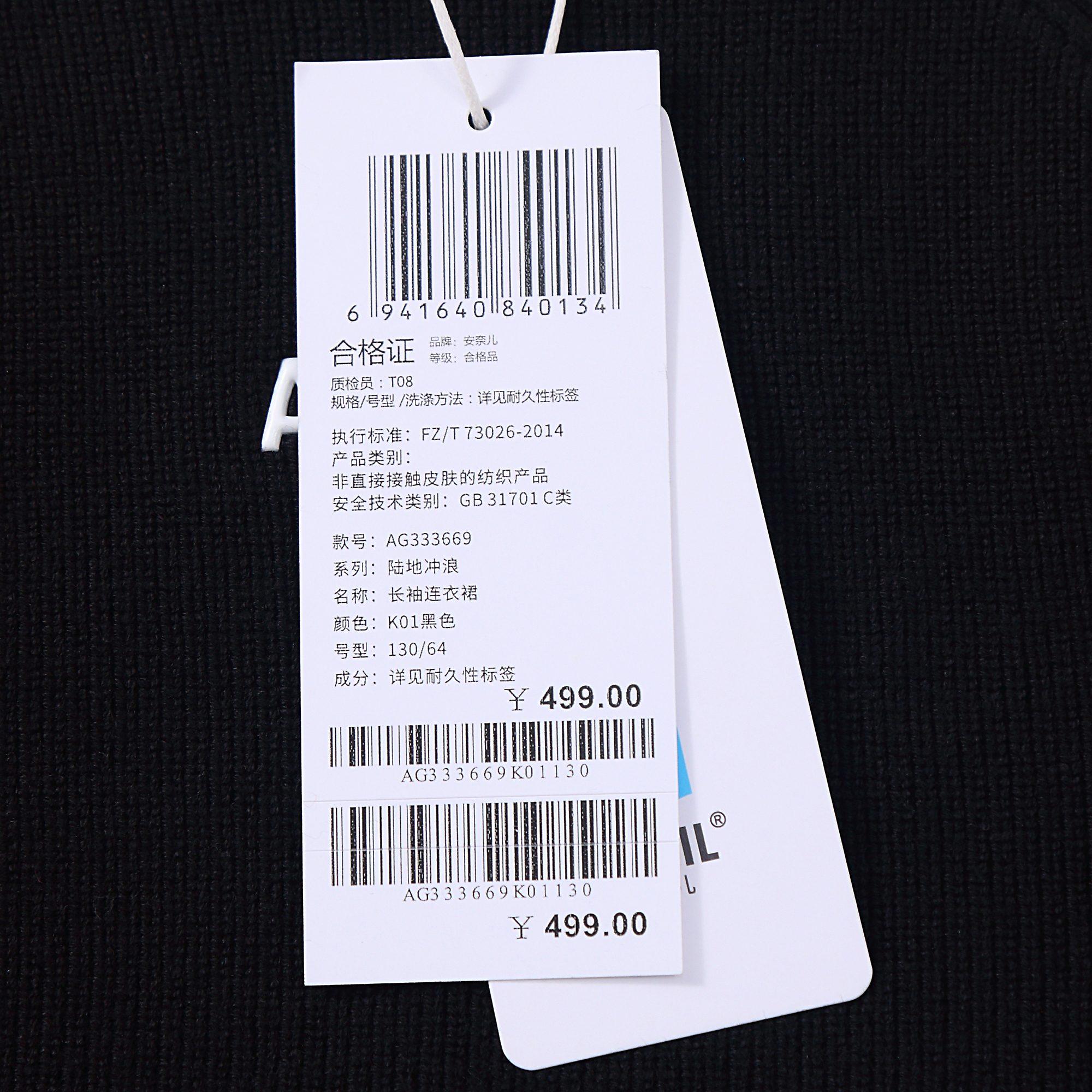 【实体店同款】女童长袖连衣裙2023年秋季新款安奈儿童装AG333669