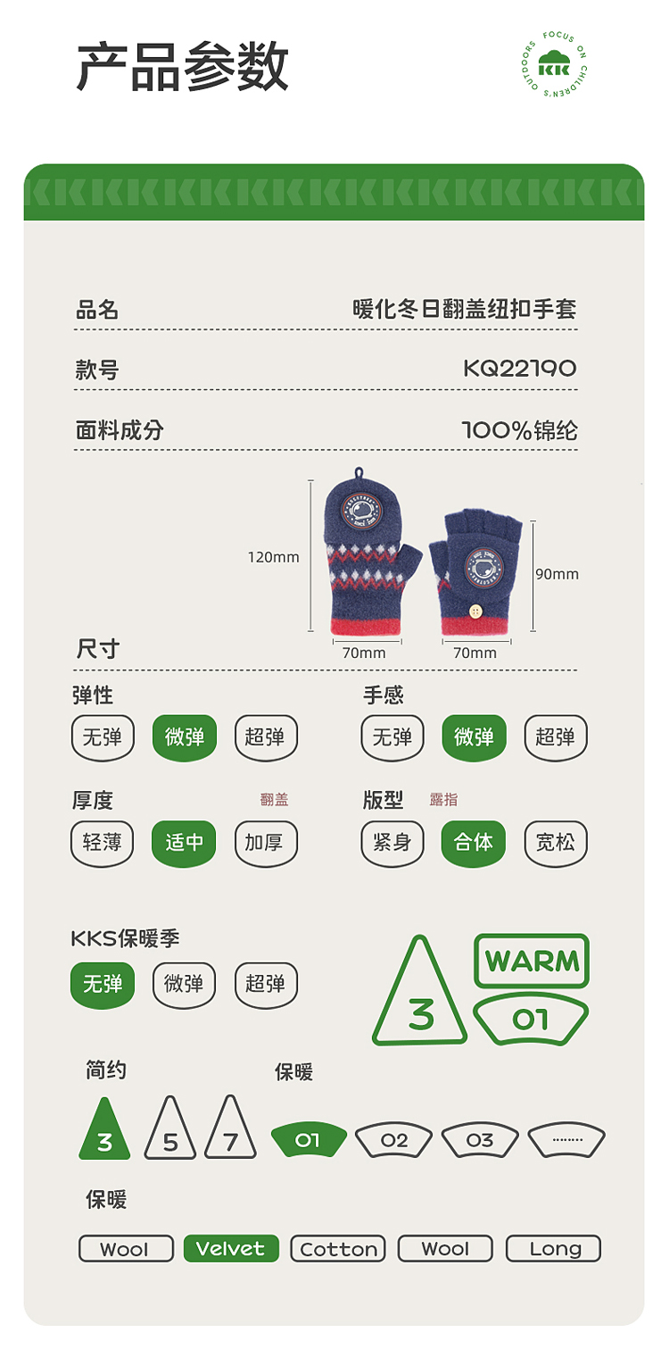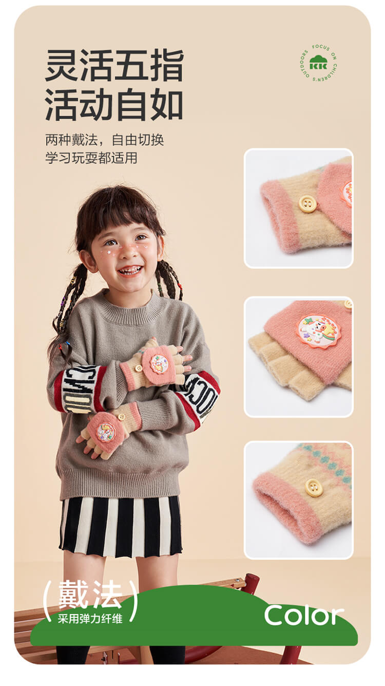 【KK树12月】暖化冬日翻盖纽扣手套KQ22190