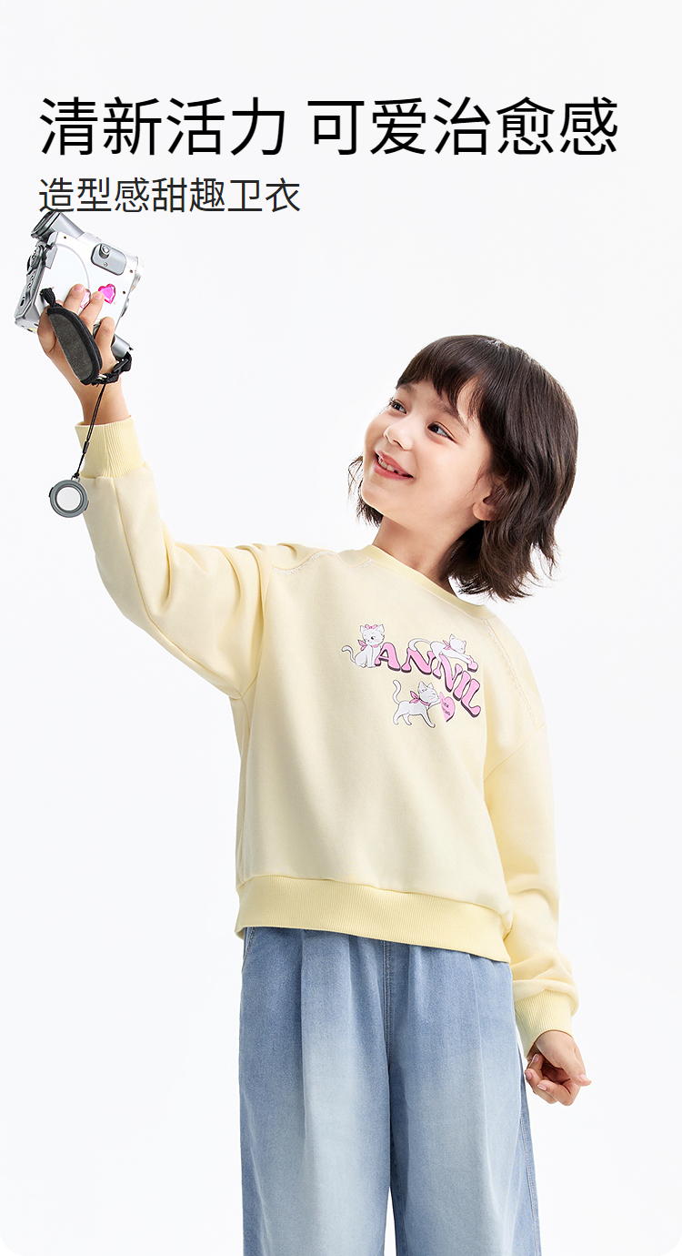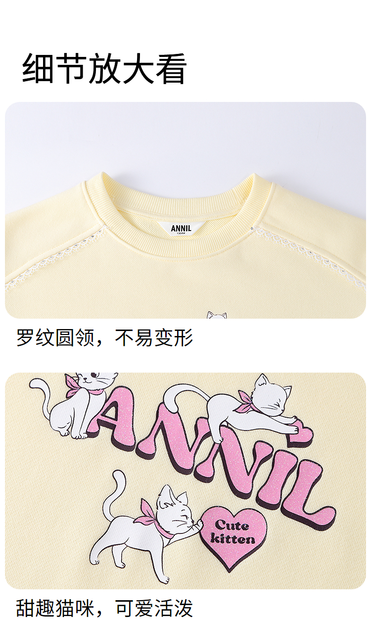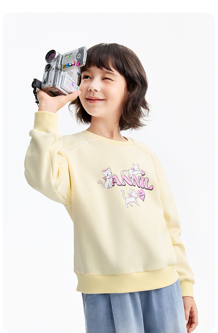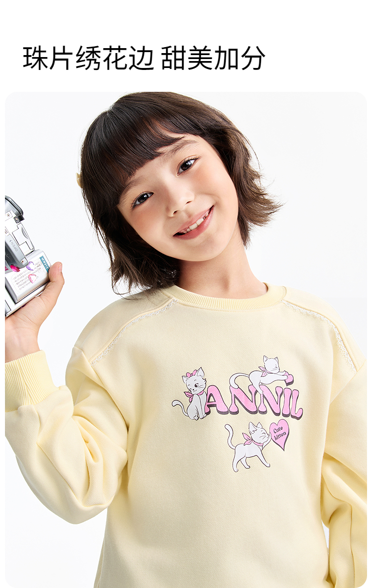 女童圆领长袖卫衣春季新款安奈儿童装EG611586