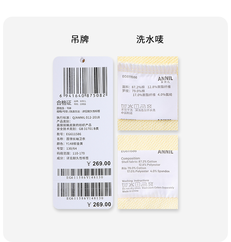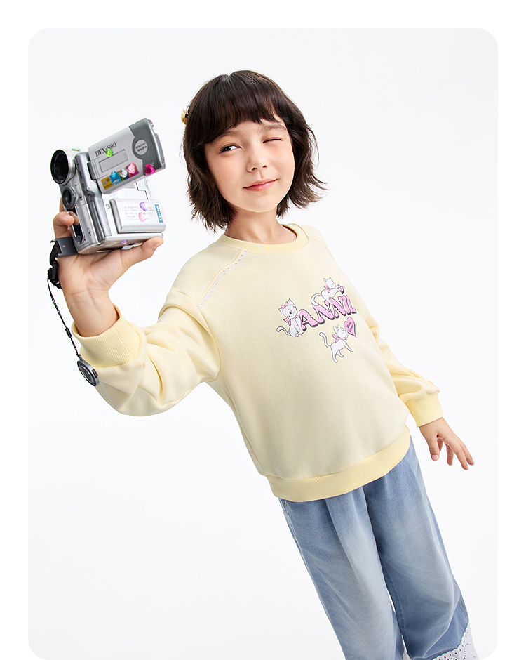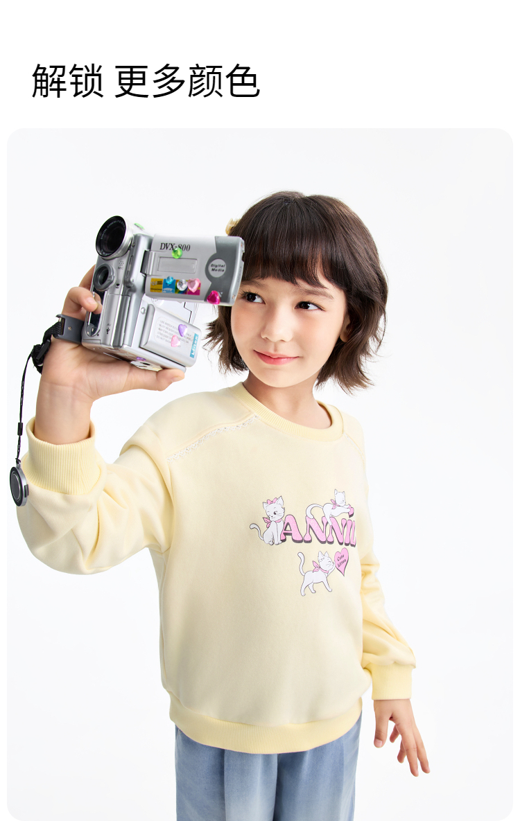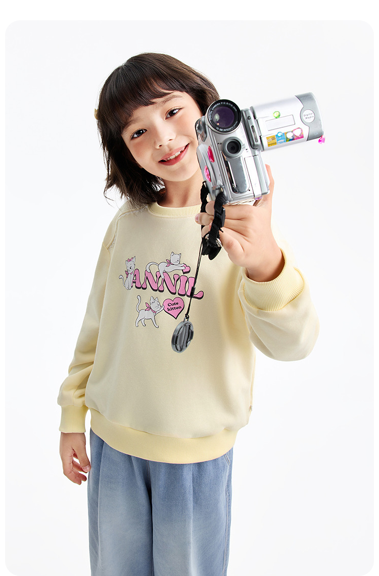 女童圆领长袖卫衣春季新款安奈儿童装EG611586
