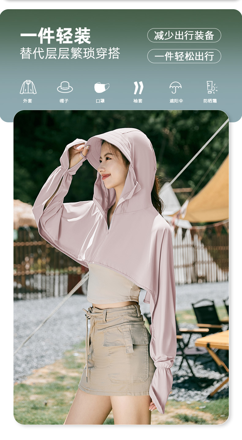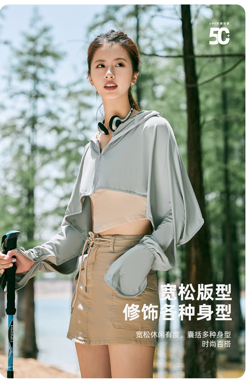雀说防晒衣女夏季披肩斗篷新款冰丝原纱防紫外线户外遮阳透气薄防晒服AL2310