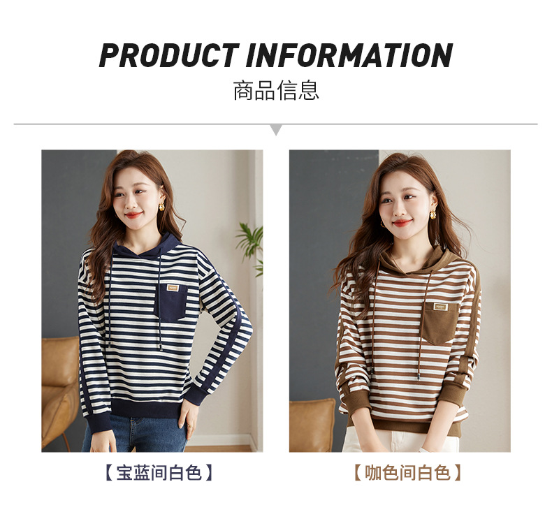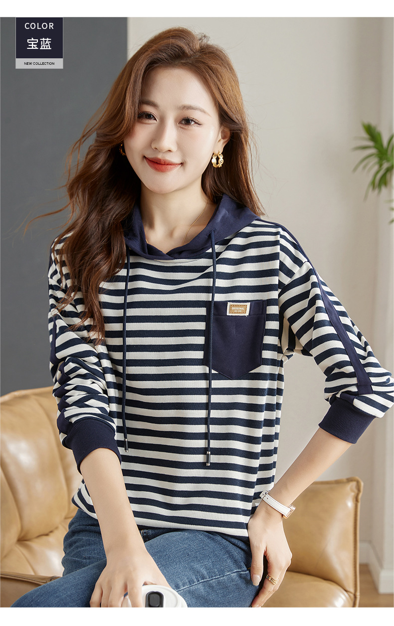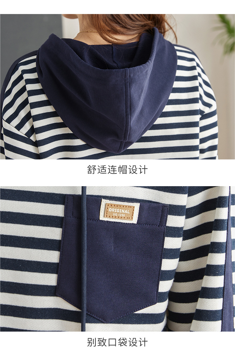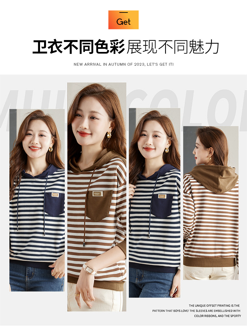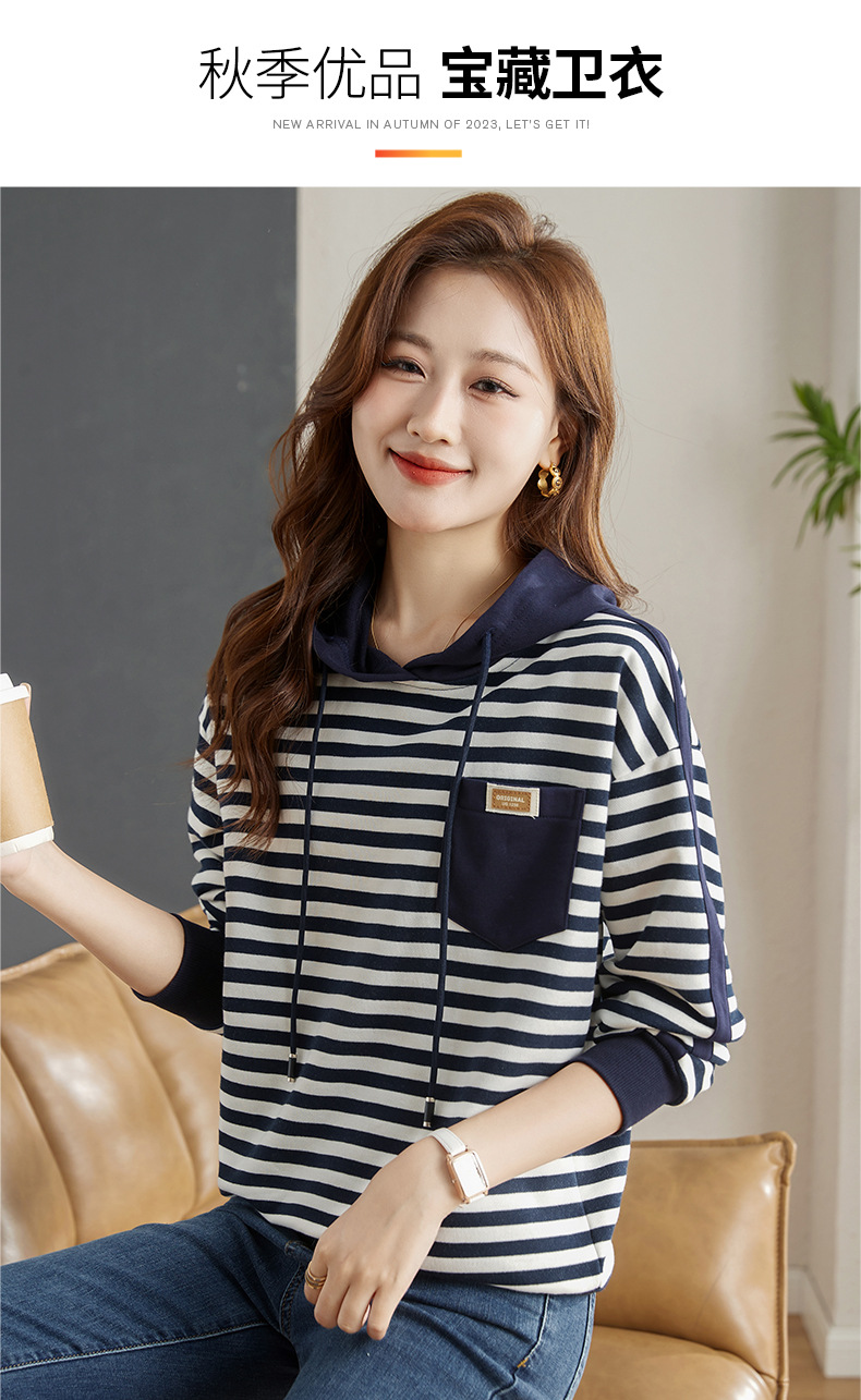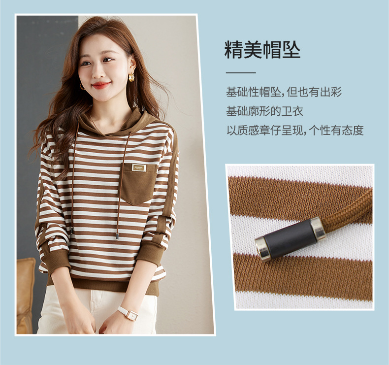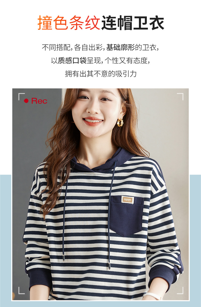 雀说连帽条纹卫衣女新款爆款女装宽松上衣高端外套AL30086