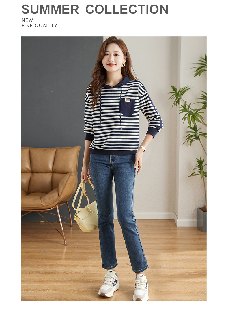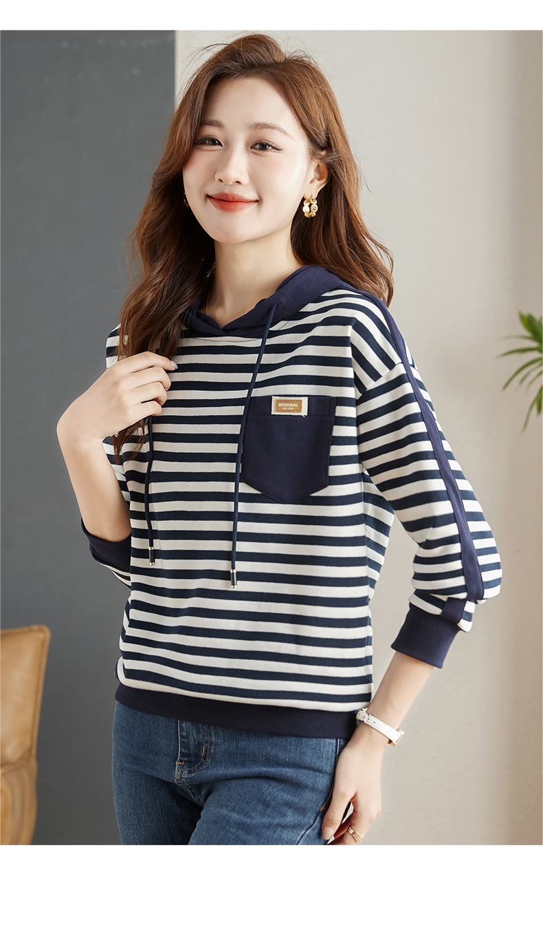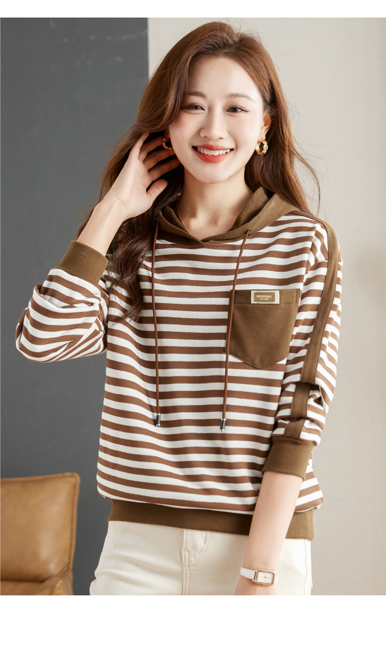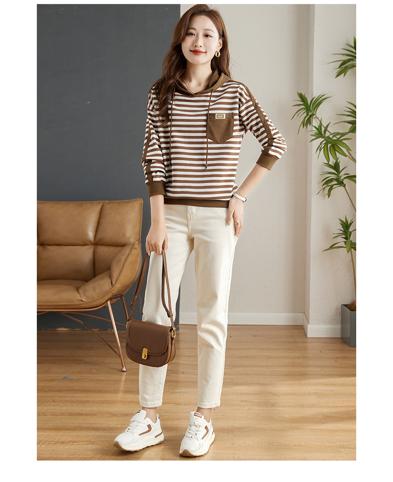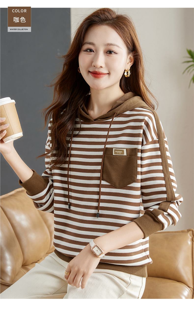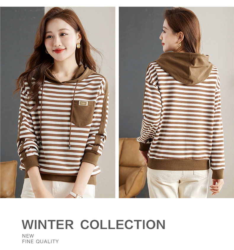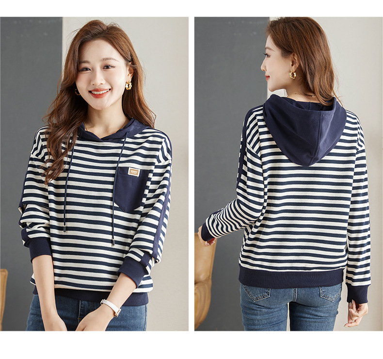 雀说连帽条纹卫衣女新款爆款女装宽松上衣高端外套AL30086