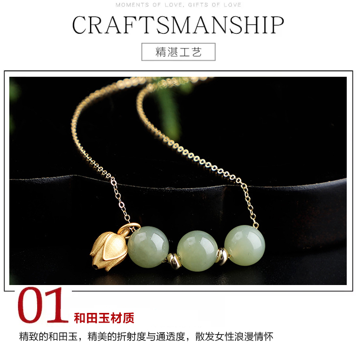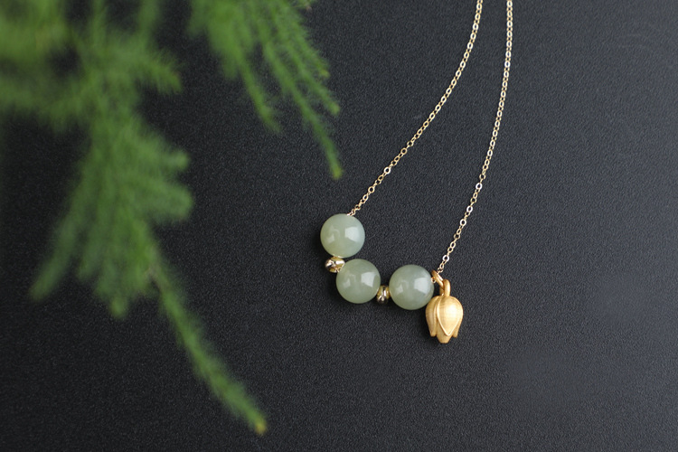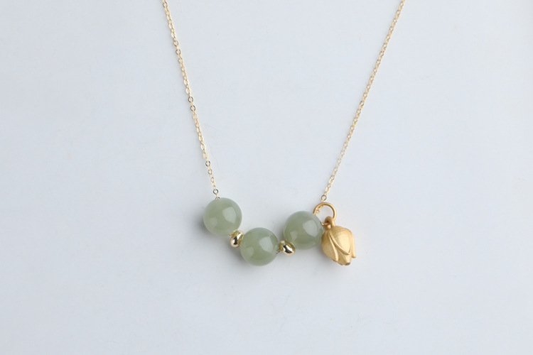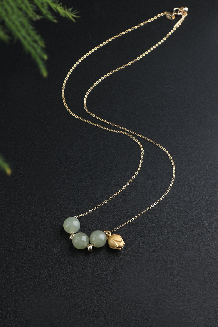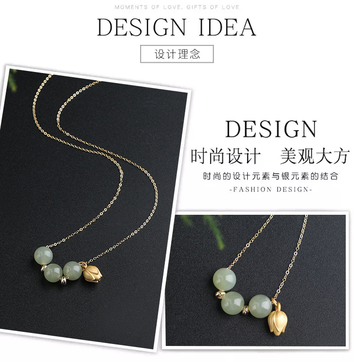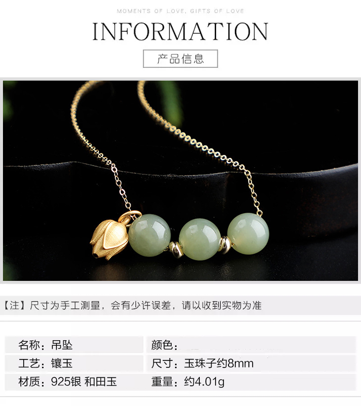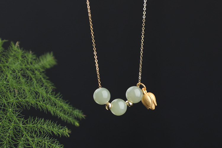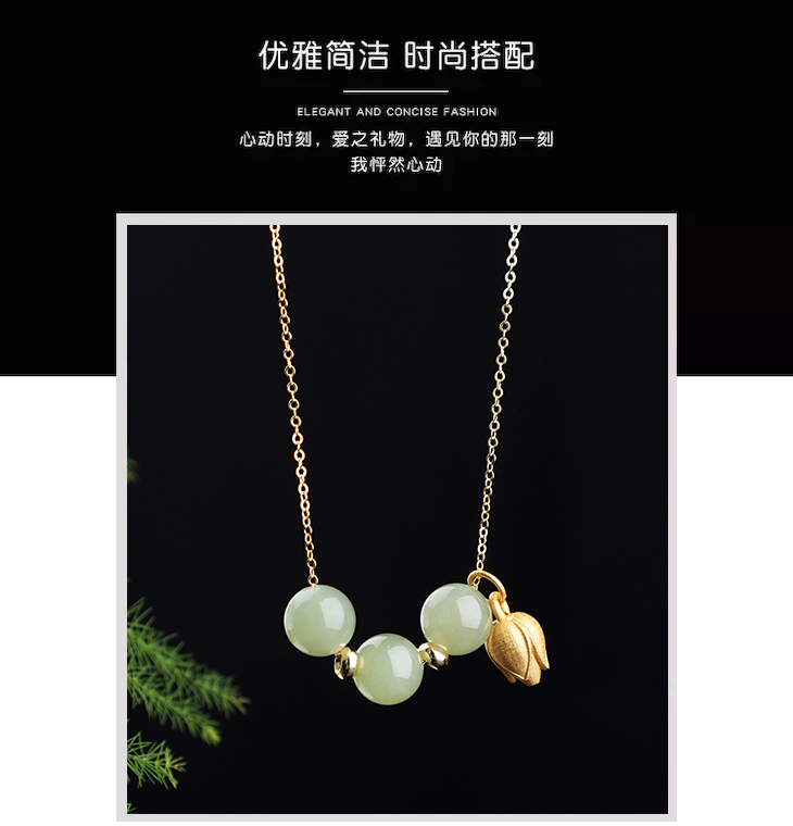 带证书轻奢晴水料和田玉吊坠玉石项链,古风925银镀金色莲蓬锁骨链JX-X10001