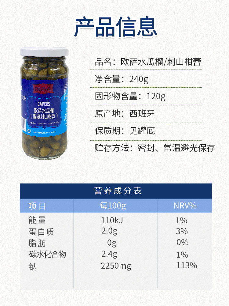 欧萨水瓜榴(醋浸刺山柑蕾)240g/瓶