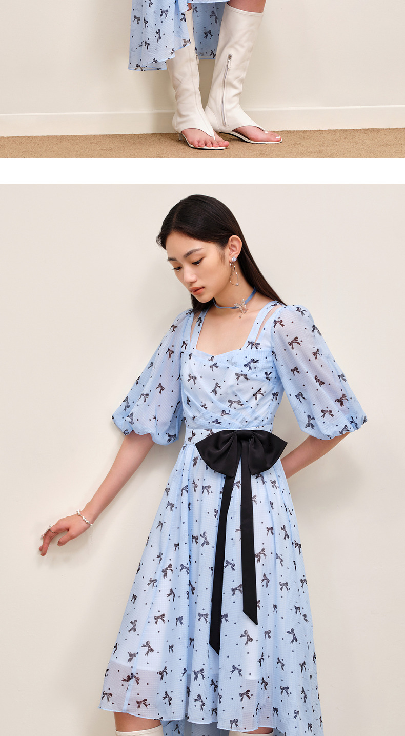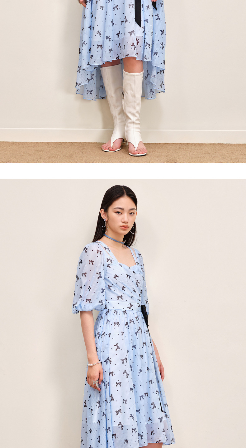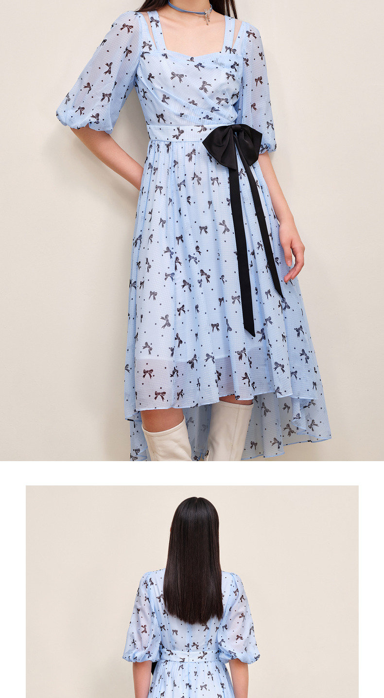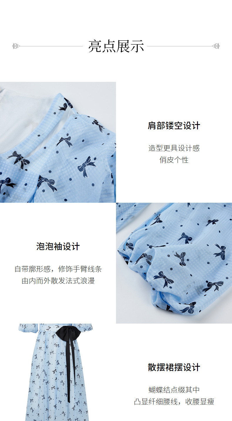MAXRIENY复古蝴蝶结波点连衣裙收褶堆叠飘带裙子(货号:MS88DR537)