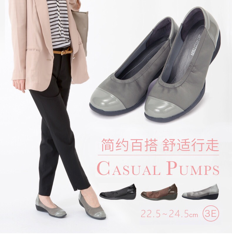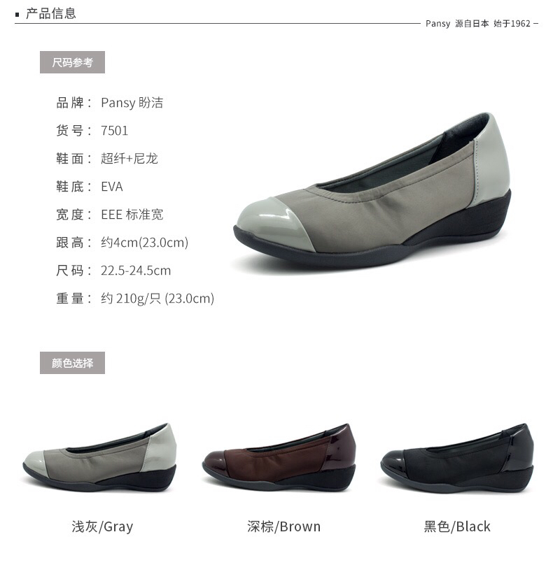 日本pansy春秋浅口通勤鞋 圆头单鞋轻便坡跟休闲鞋