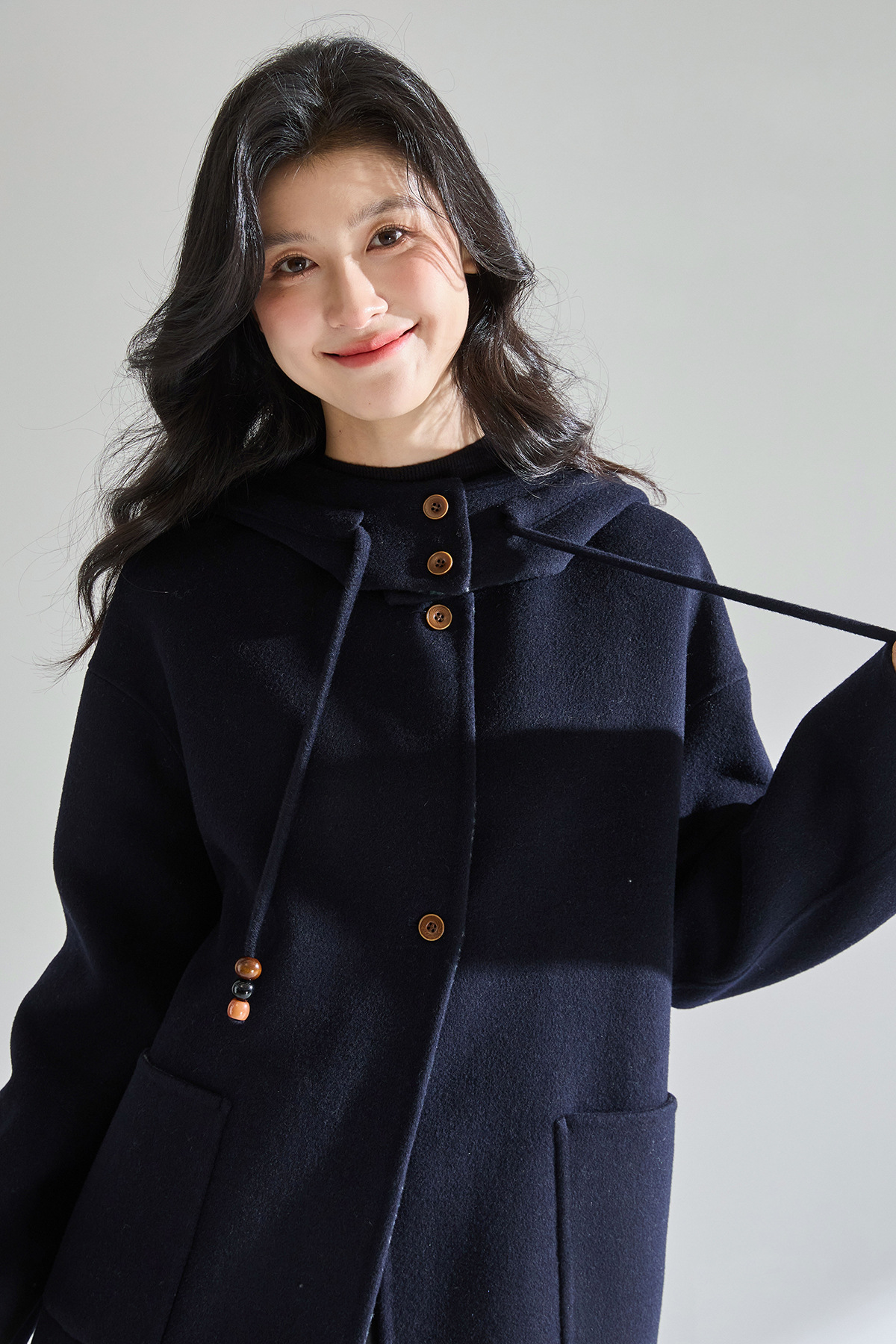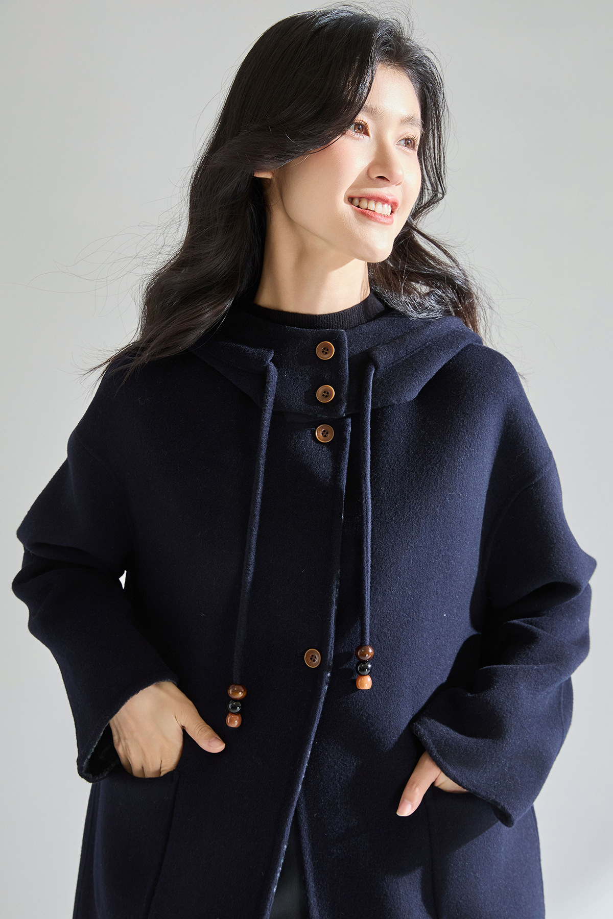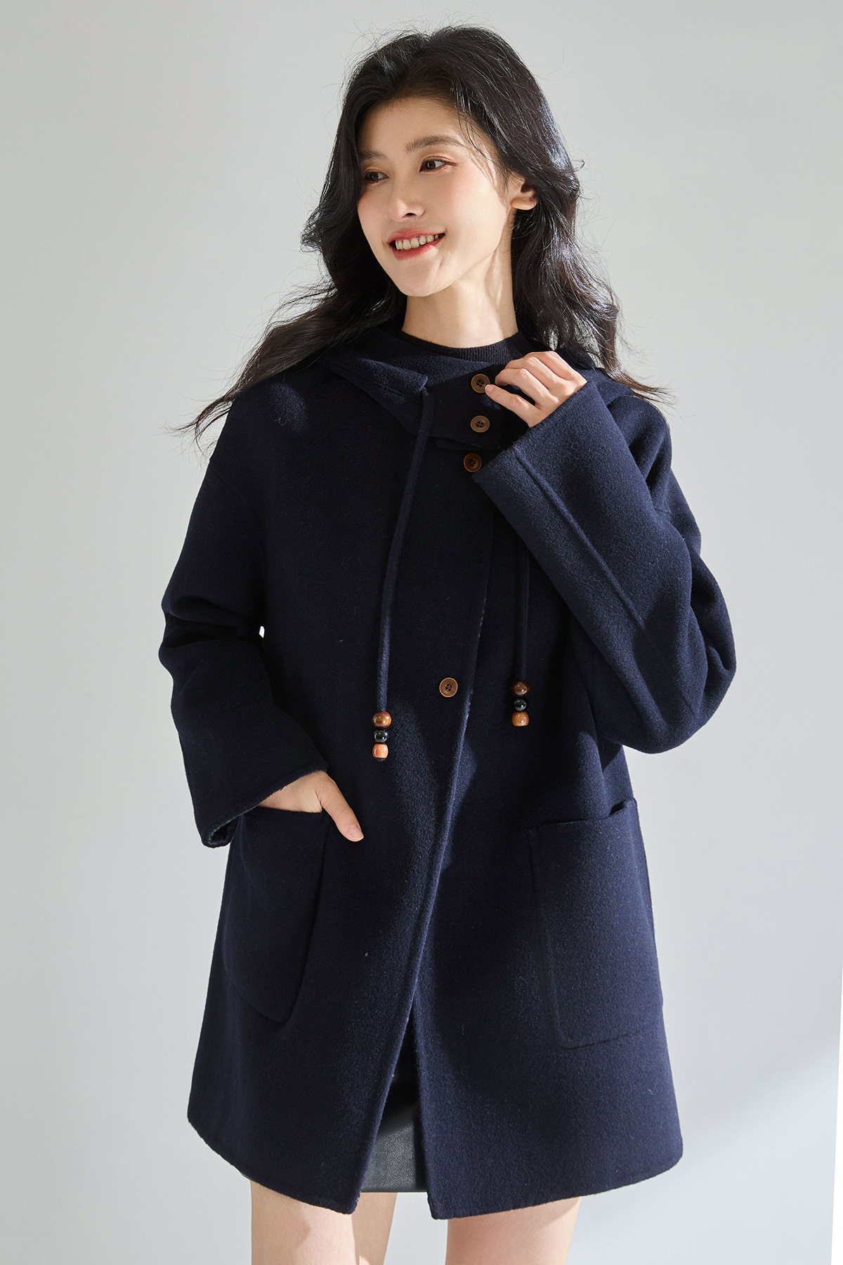「高货sh」全新升级【铂金会员864/天猫1169/差价305】(13855)洛诗琳连帽两穿羊毛双面呢大衣2025秋冬中长款毛呢外套女