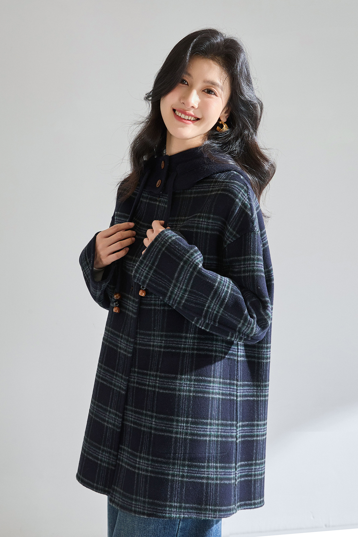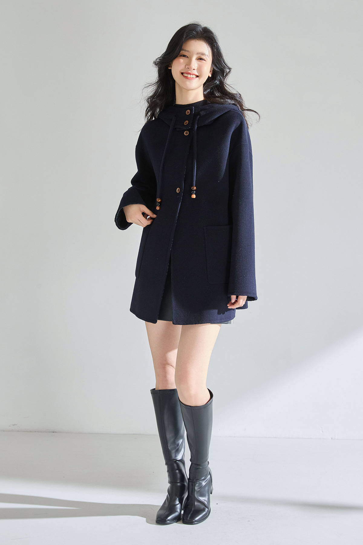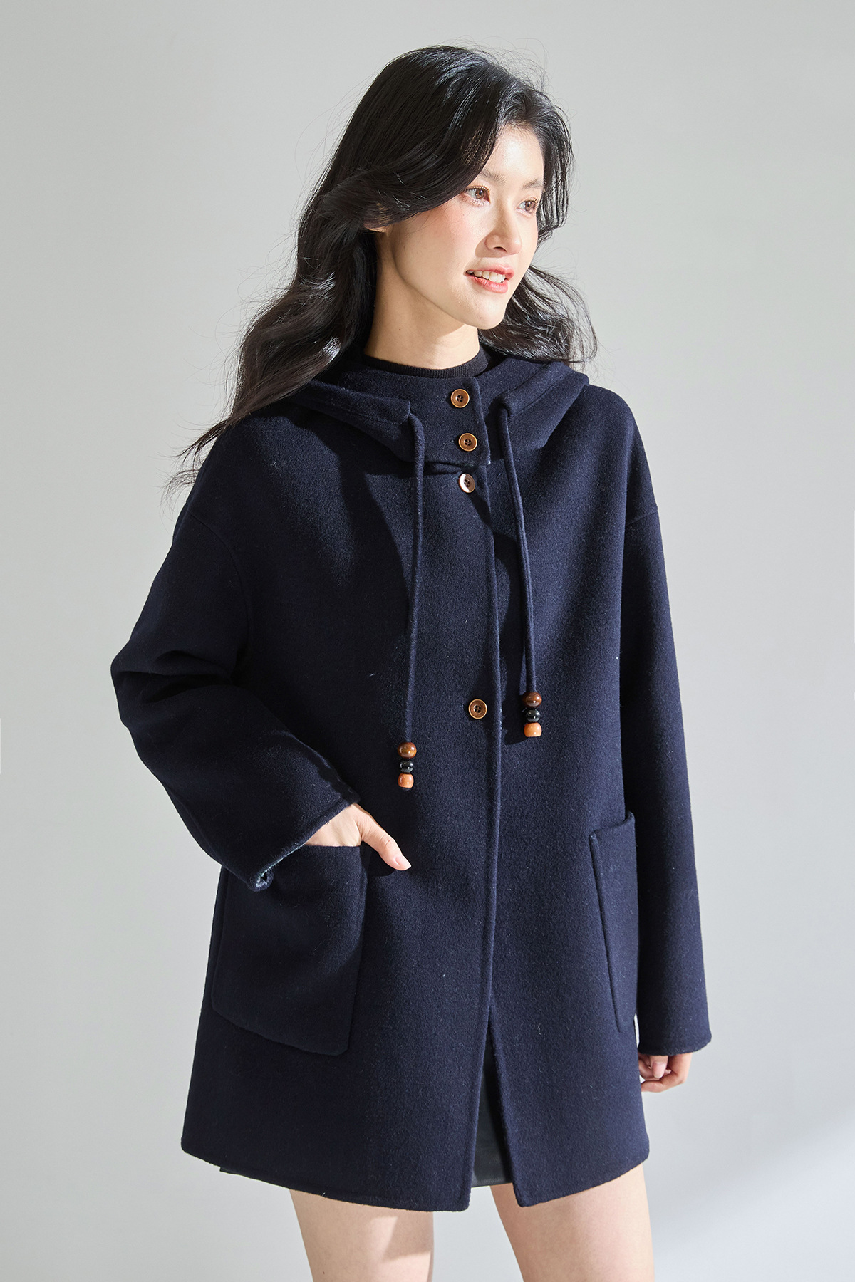 「高货sh」全新升级【铂金会员864/天猫1169/差价305】(13855)洛诗琳连帽两穿羊毛双面呢大衣2025秋冬中长款毛呢外套女