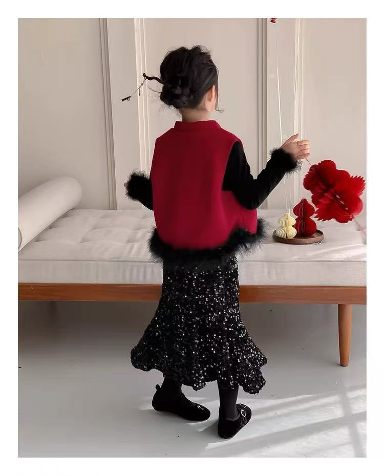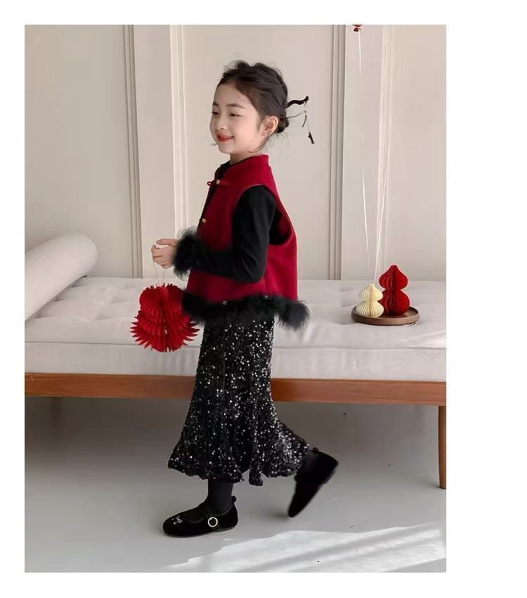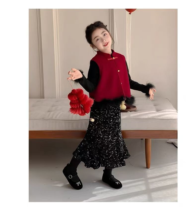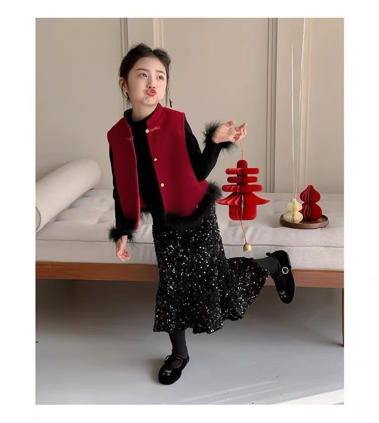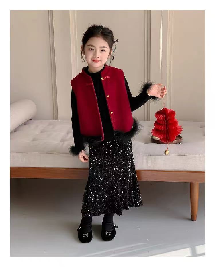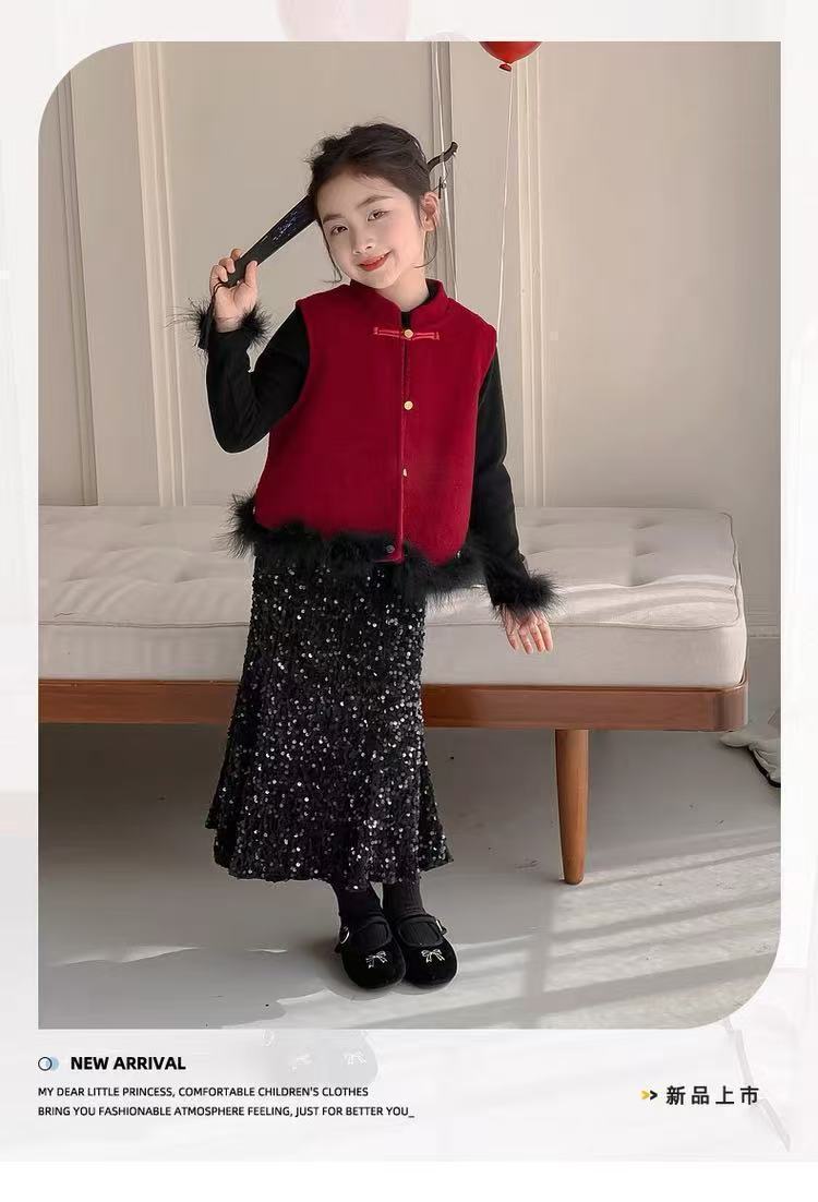 【匠心面料亲肤自然❗️挺括有型舒适柔软】2026新年春节过年服女童新款冬装新中式红色新年衣服公主裙套装儿童拜年服。jc