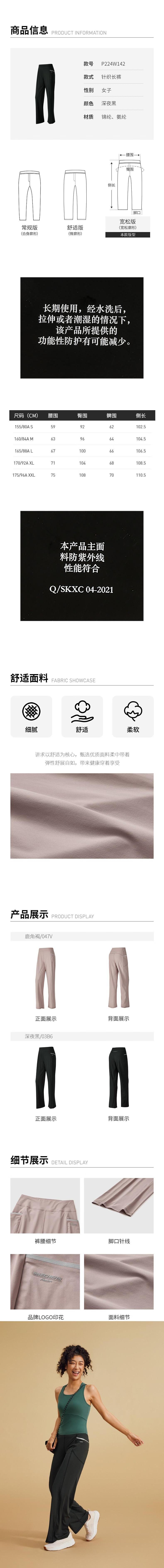 Skechers斯凯奇 女针织长裤 P224W142-047V