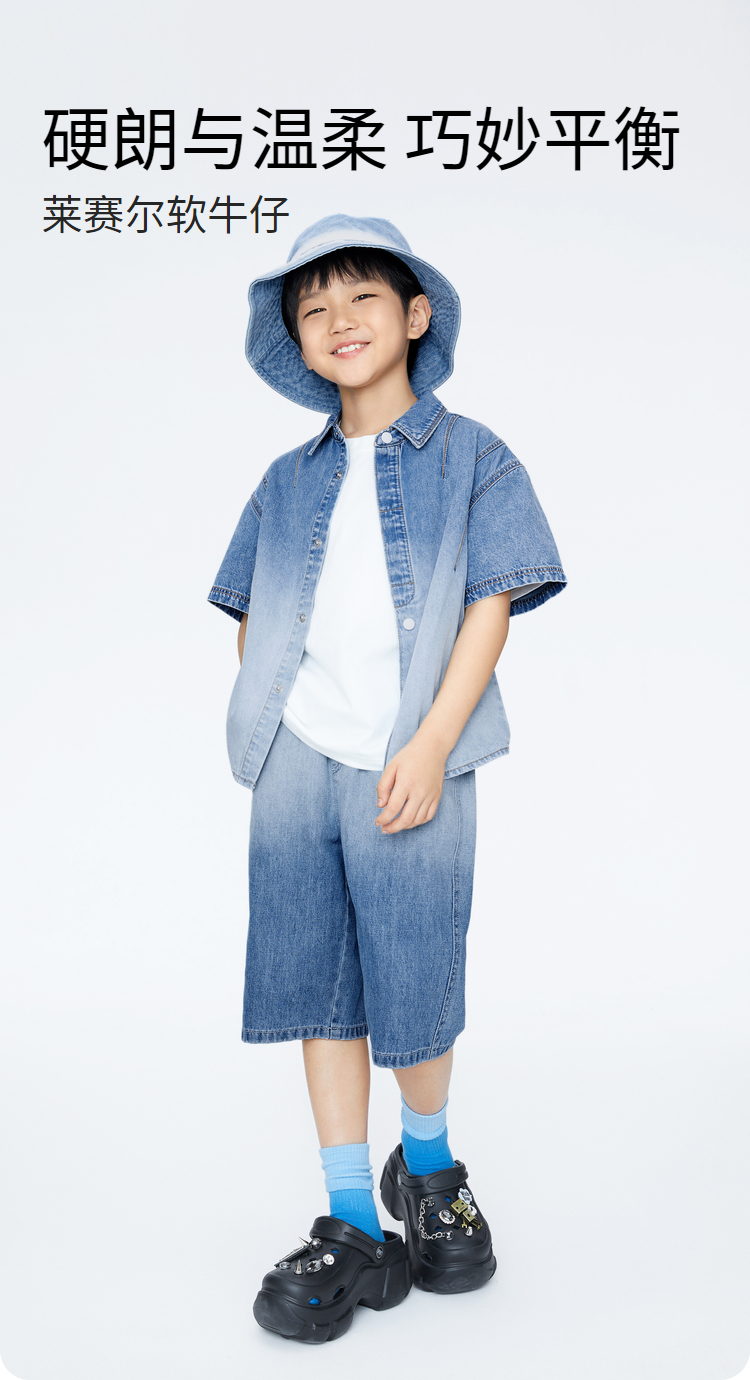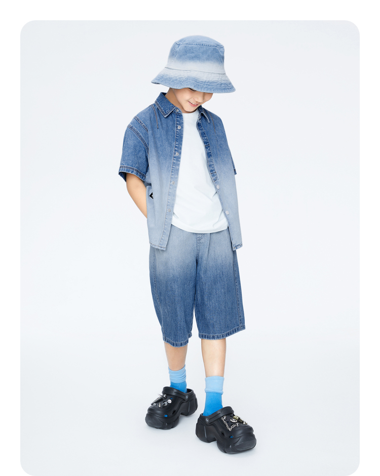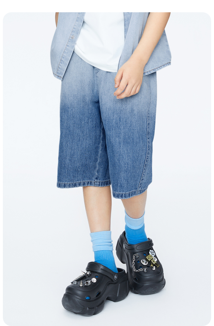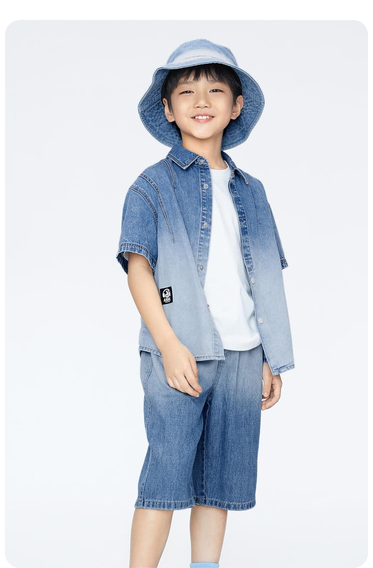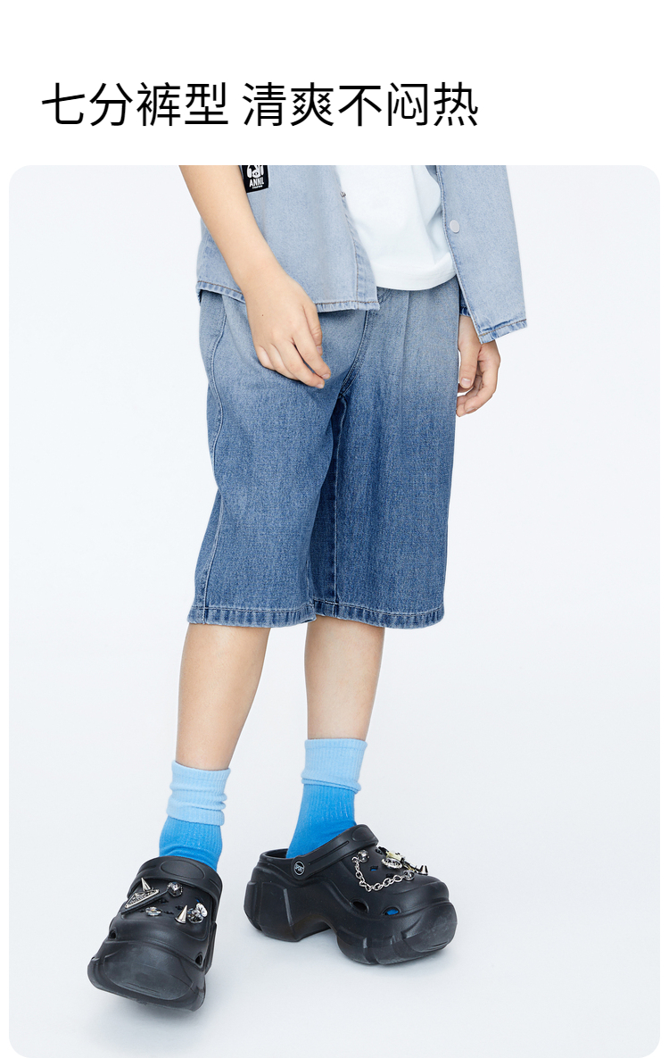 男童渐变泡芙软牛仔七分裤裤子新款安奈儿童装实体店同款AB426604