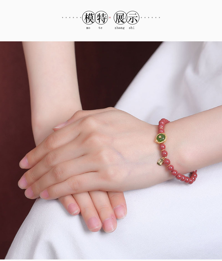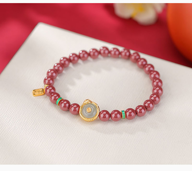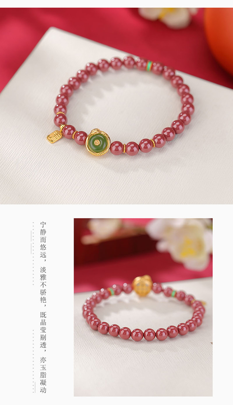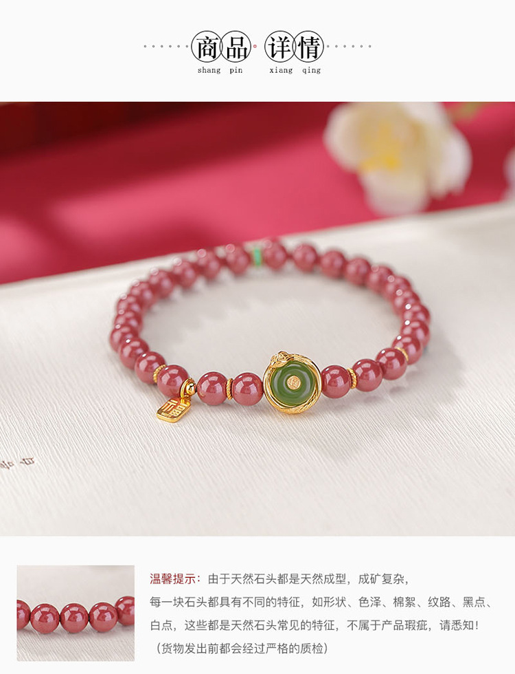S925纯银镀金翡翠和田玉碧玉帝王砂灵蛇平安扣福字手链CW