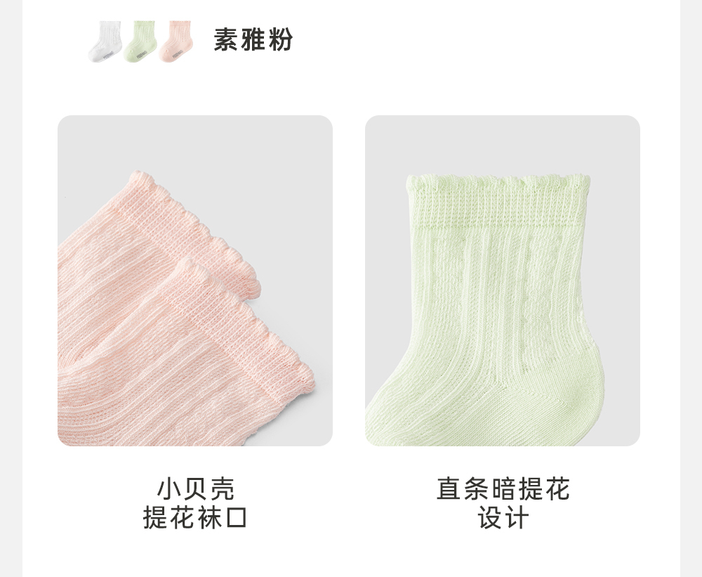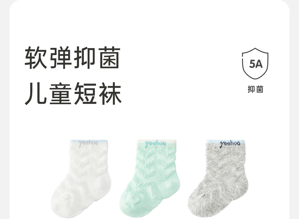 【商场同款】英氏儿童袜子透气抑菌短袜春夏新款薄袜三双装
