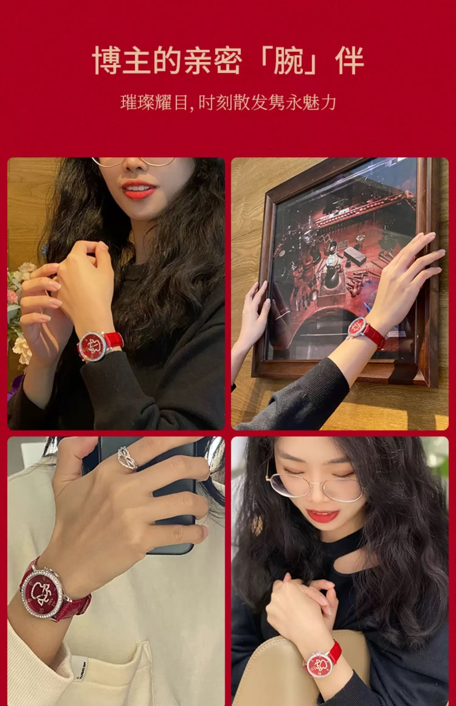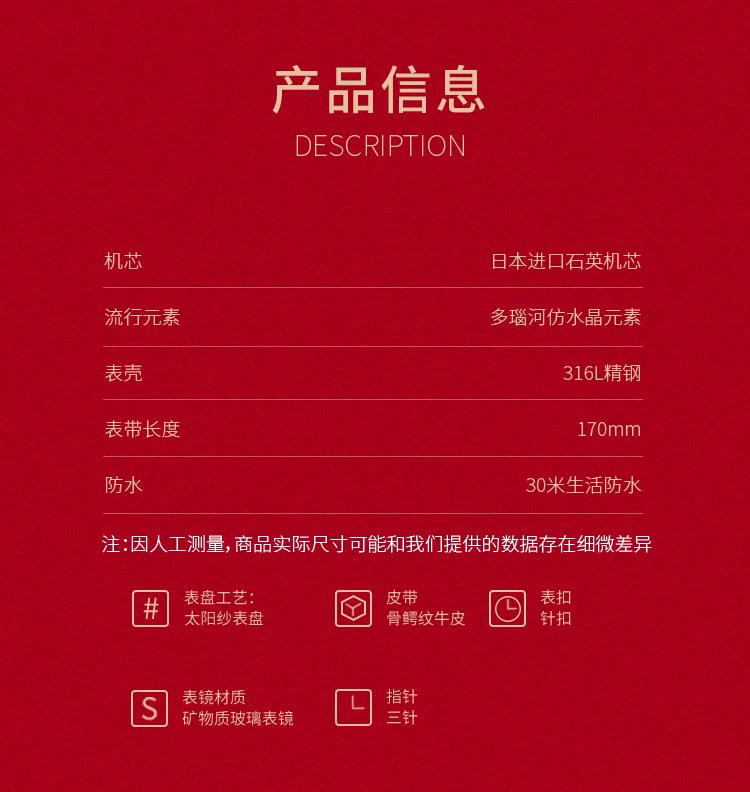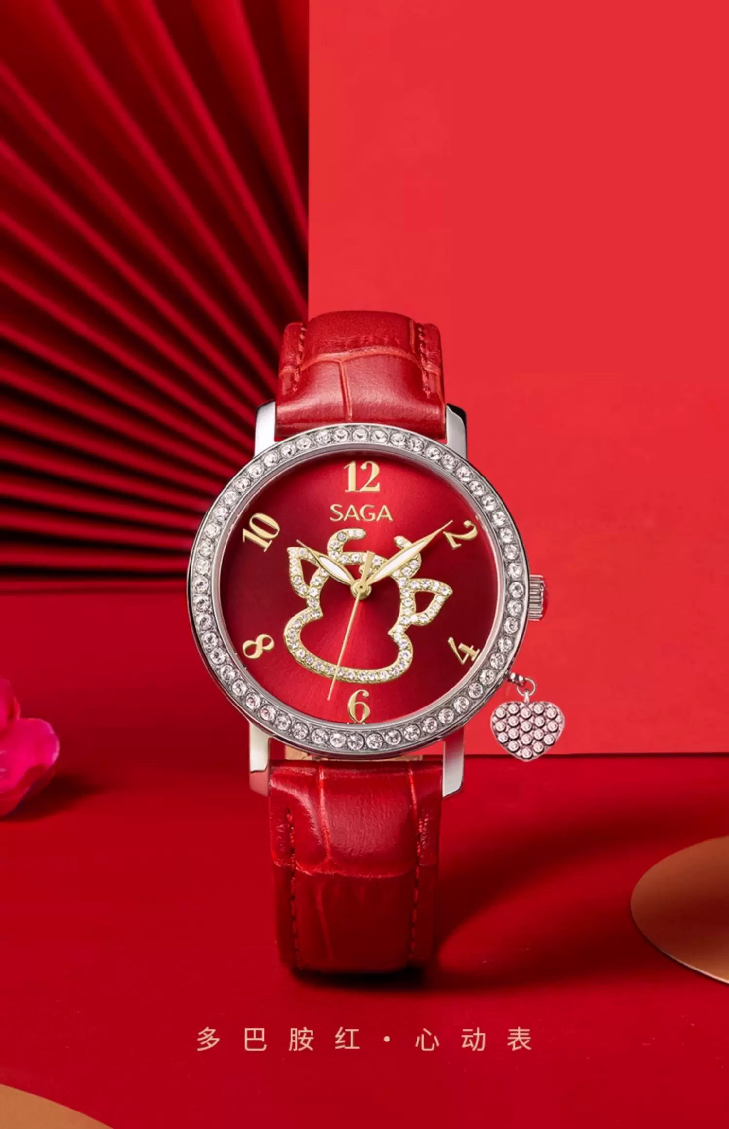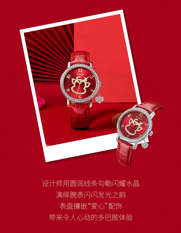SAGA世家表女士手表时尚 轻奢高级感限定款腕表红色时装女士手表