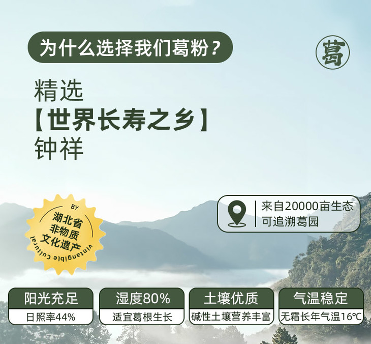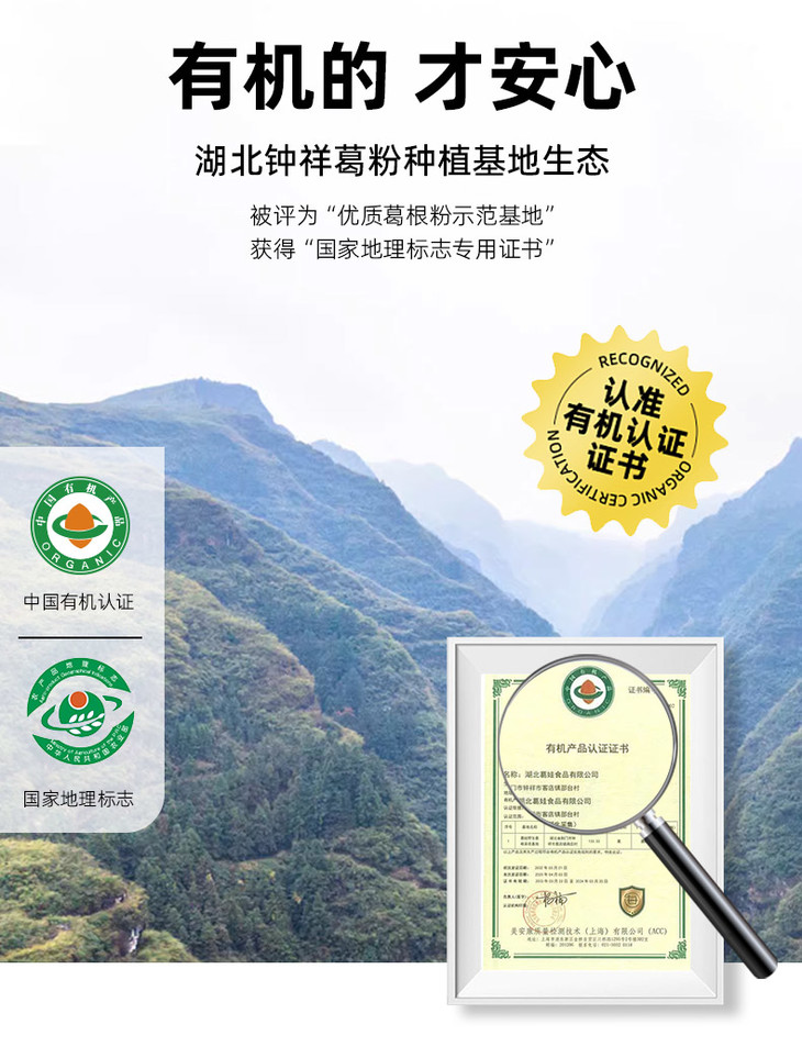 【养生臻选】湖北有机葛根粉 地理标志保护产品 有机认证10斤葛根 才出来1斤粉 口感细腻顺滑 清新爽口 回甘