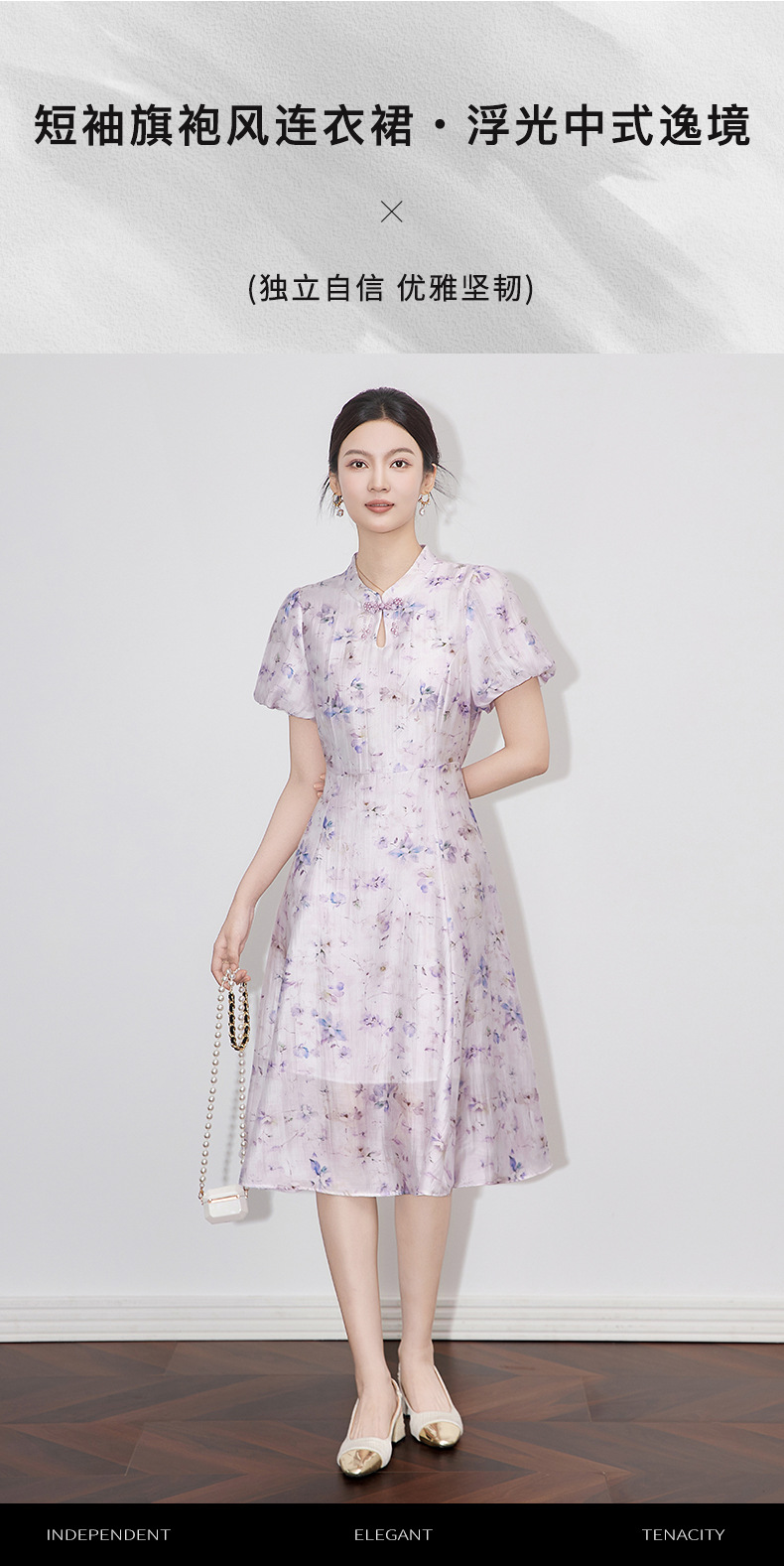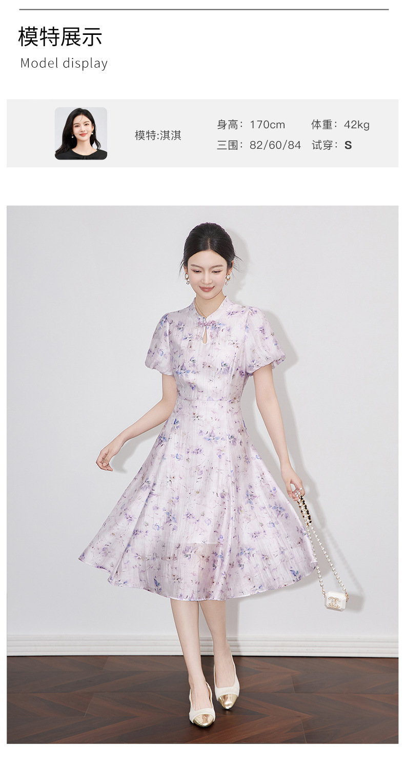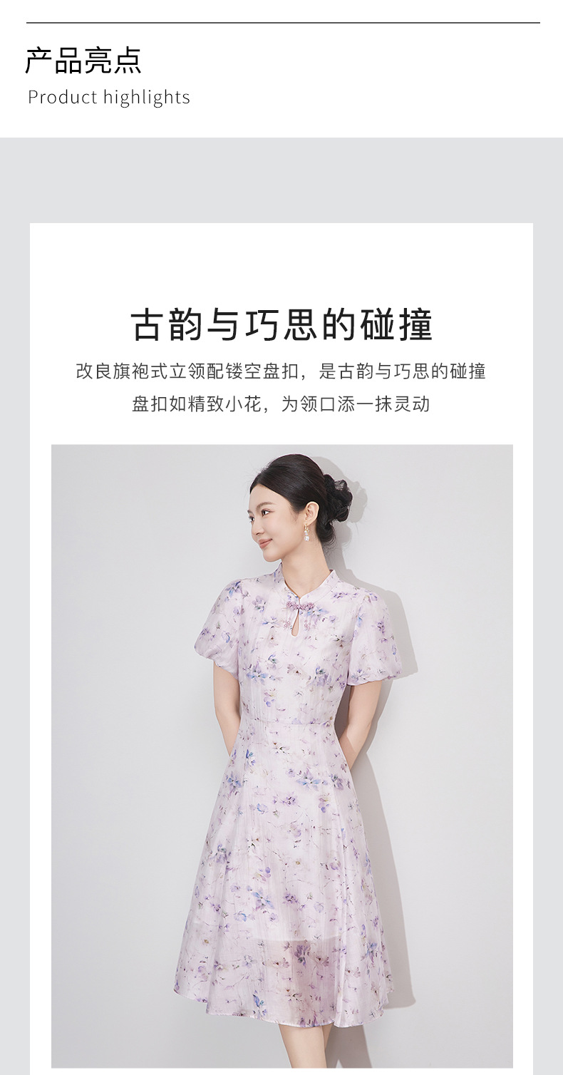 「高货wl」全新升级【铂金会员367/天猫489/差价122】(02413)洛诗琳新中式天丝麻印花连衣裙2025夏季气质国风旗袍裙女