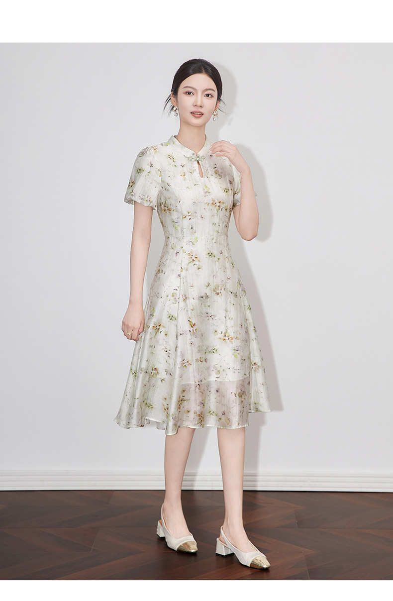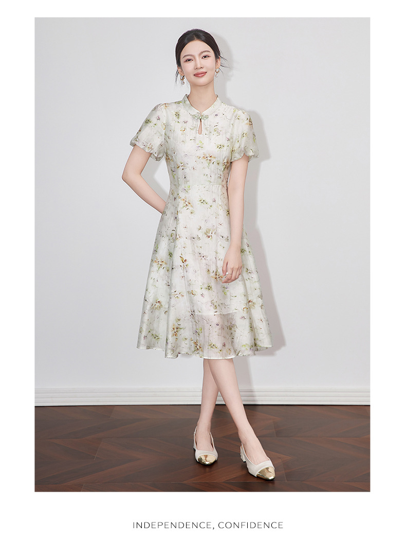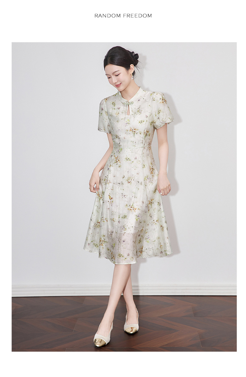 「高货wl」全新升级【铂金会员367/天猫489/差价122】(02413)洛诗琳新中式天丝麻印花连衣裙2025夏季气质国风旗袍裙女