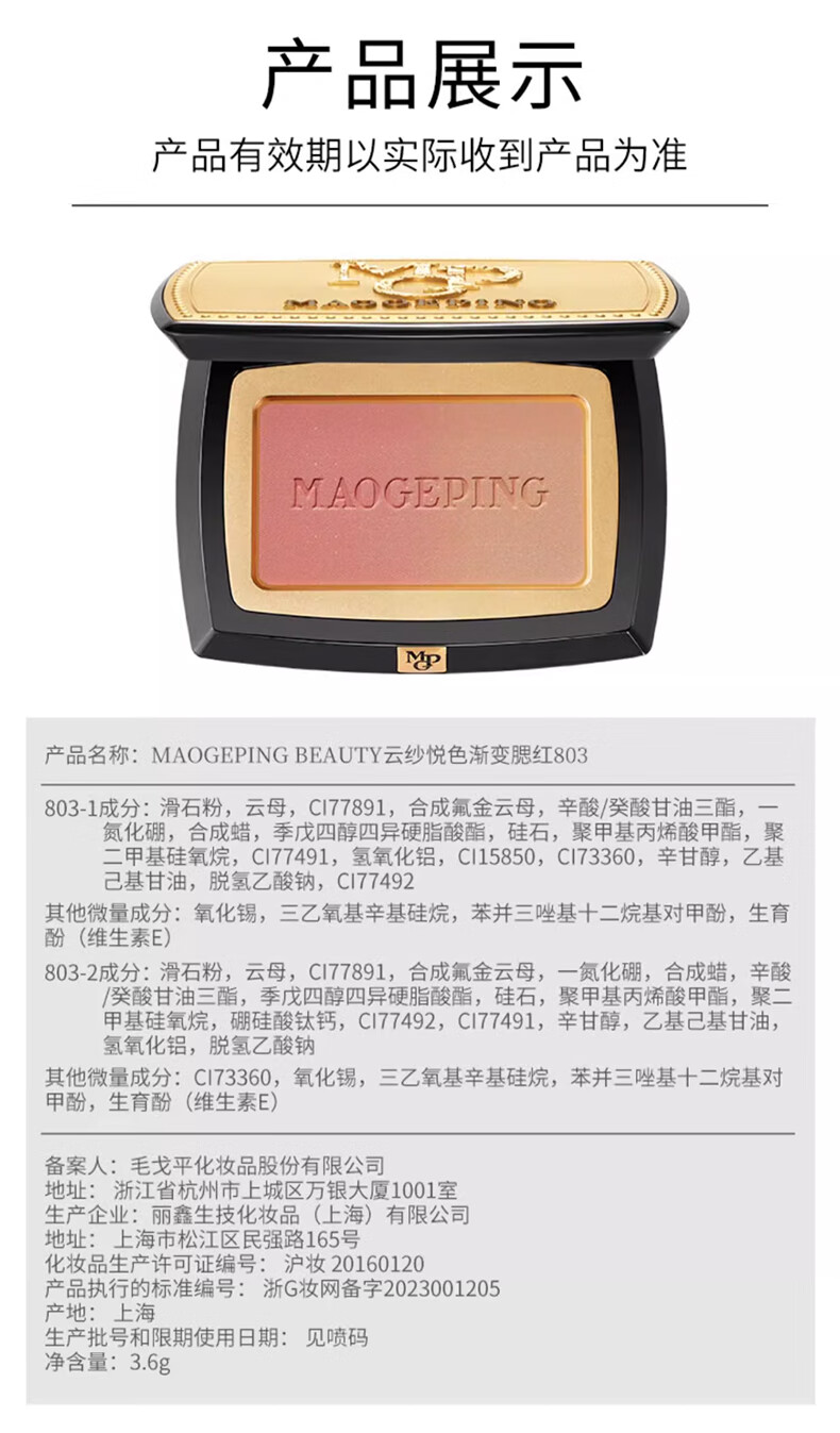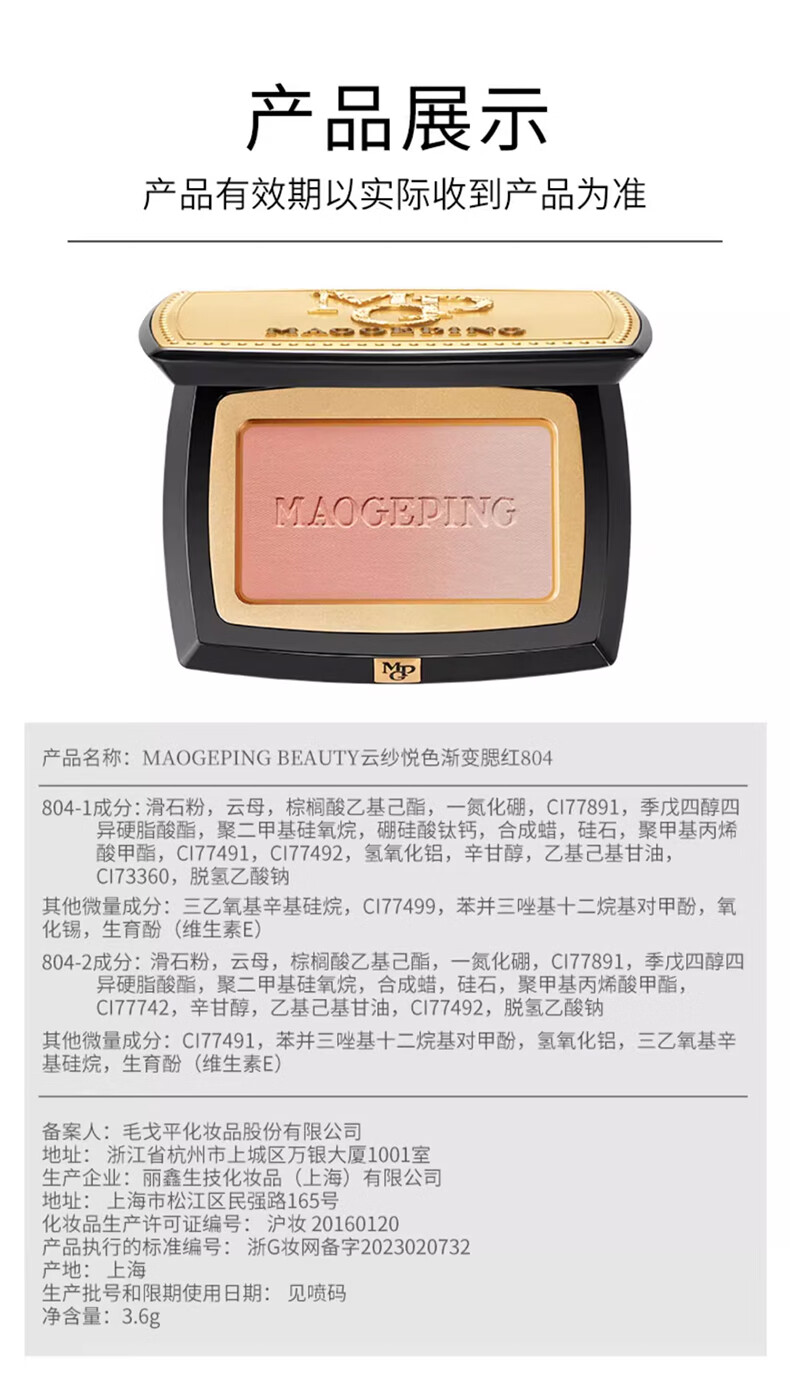 新品 毛戈平云纱悦色渐变腮红 胭脂修容高光提亮定妆