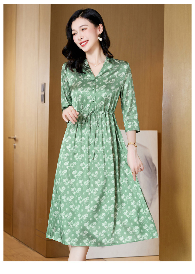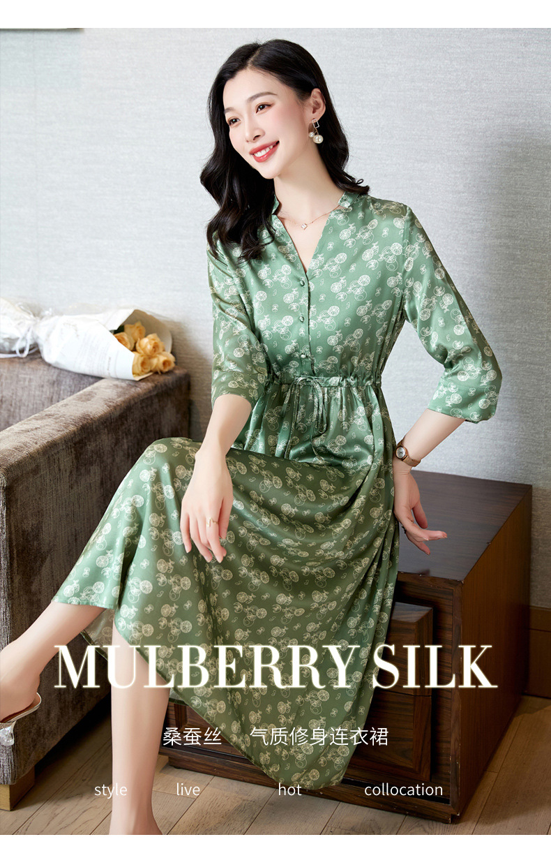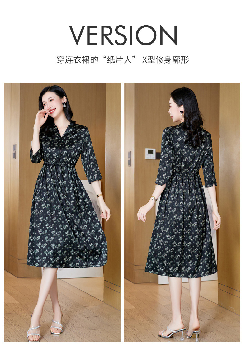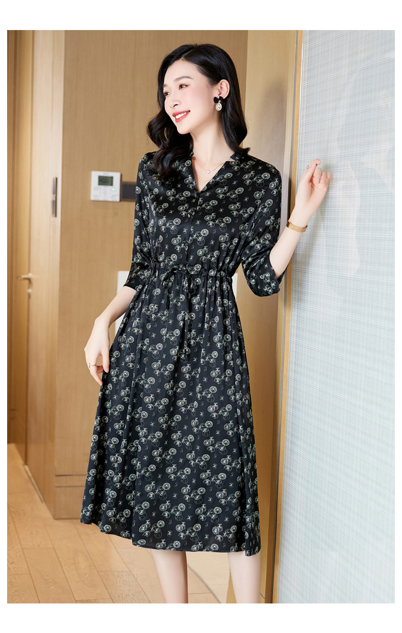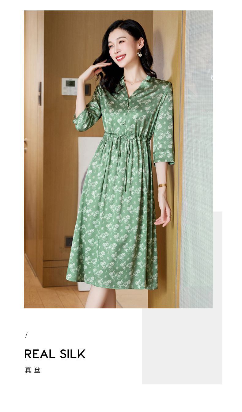 ASE-23068印染V领气质百搭时尚真丝连衣裙