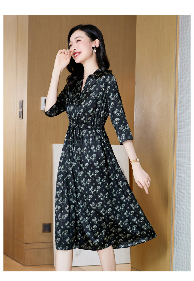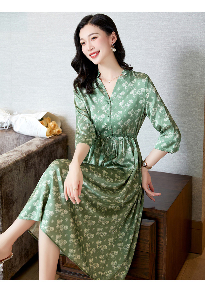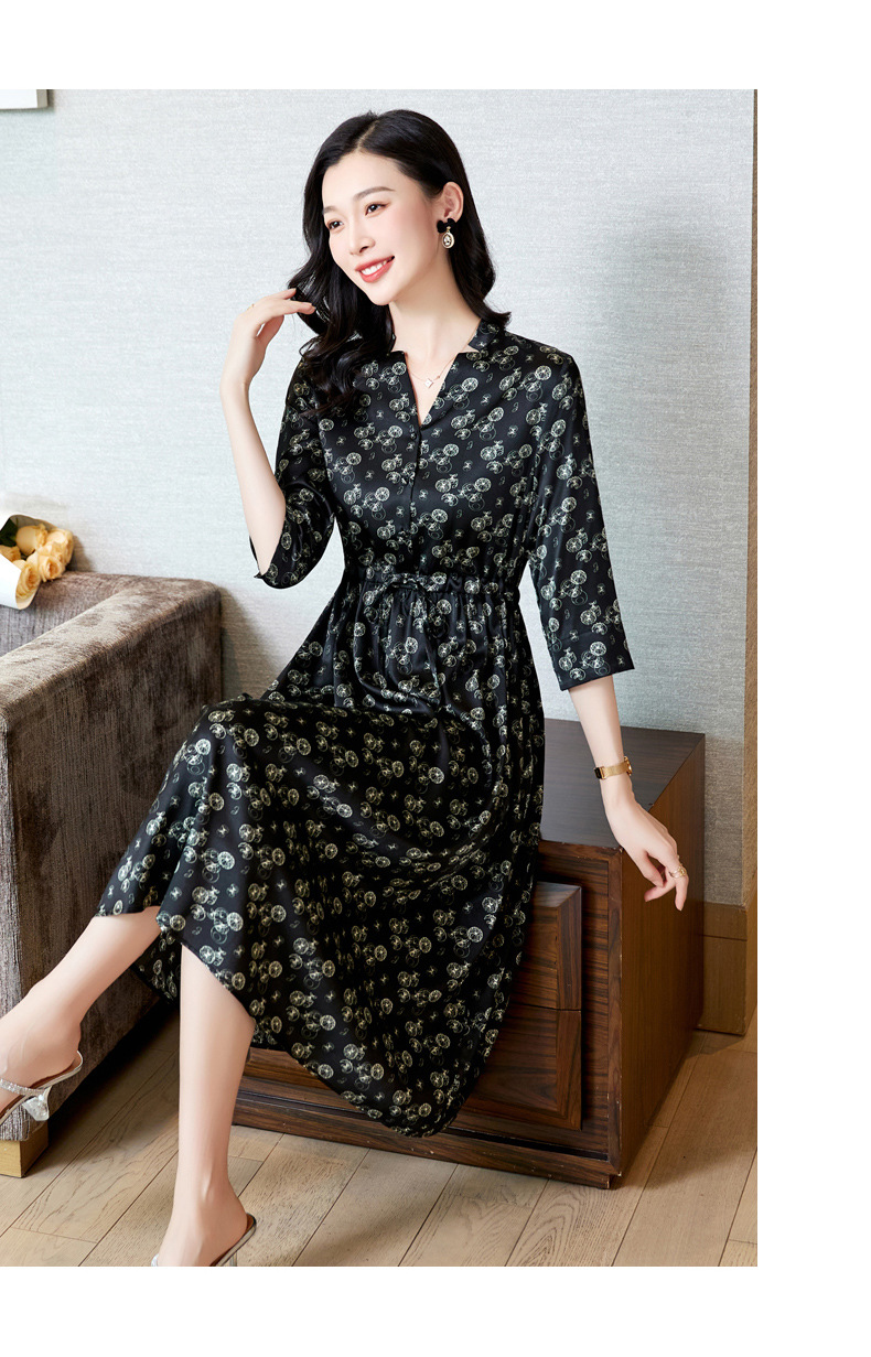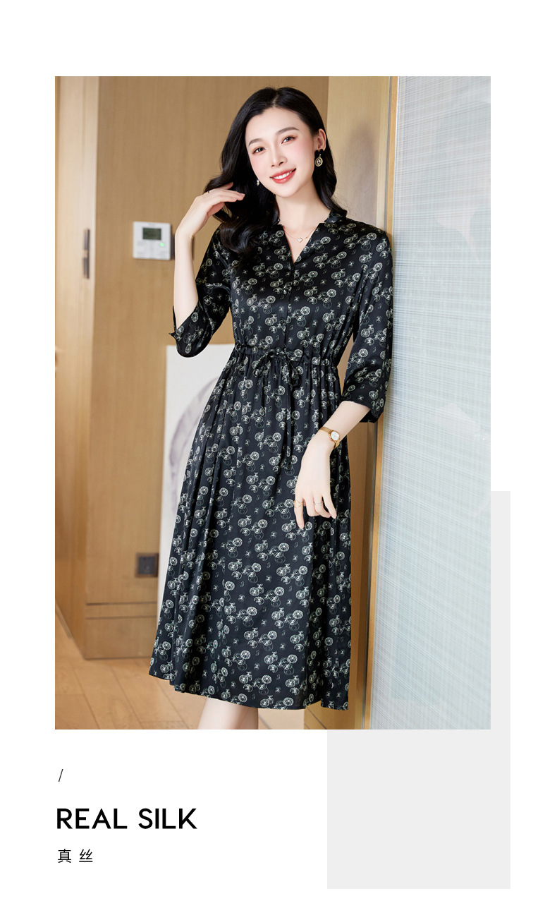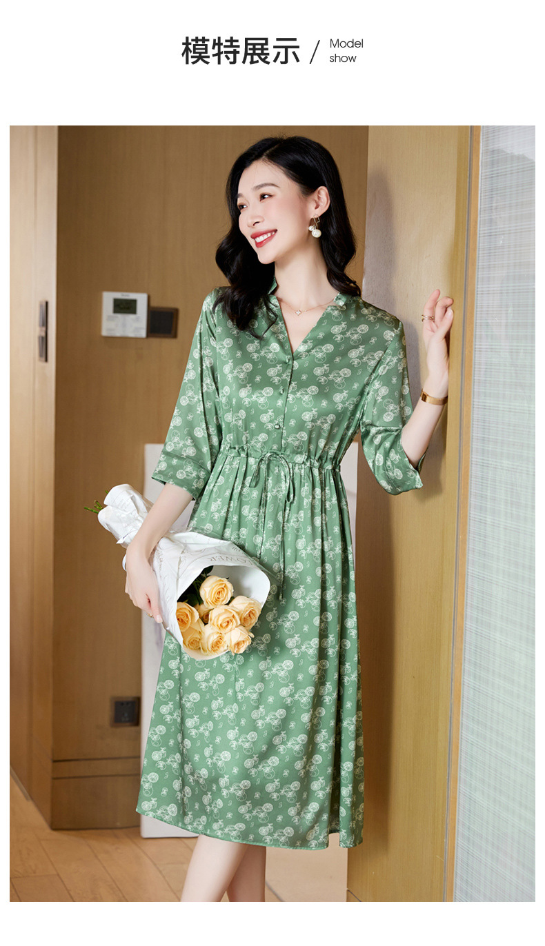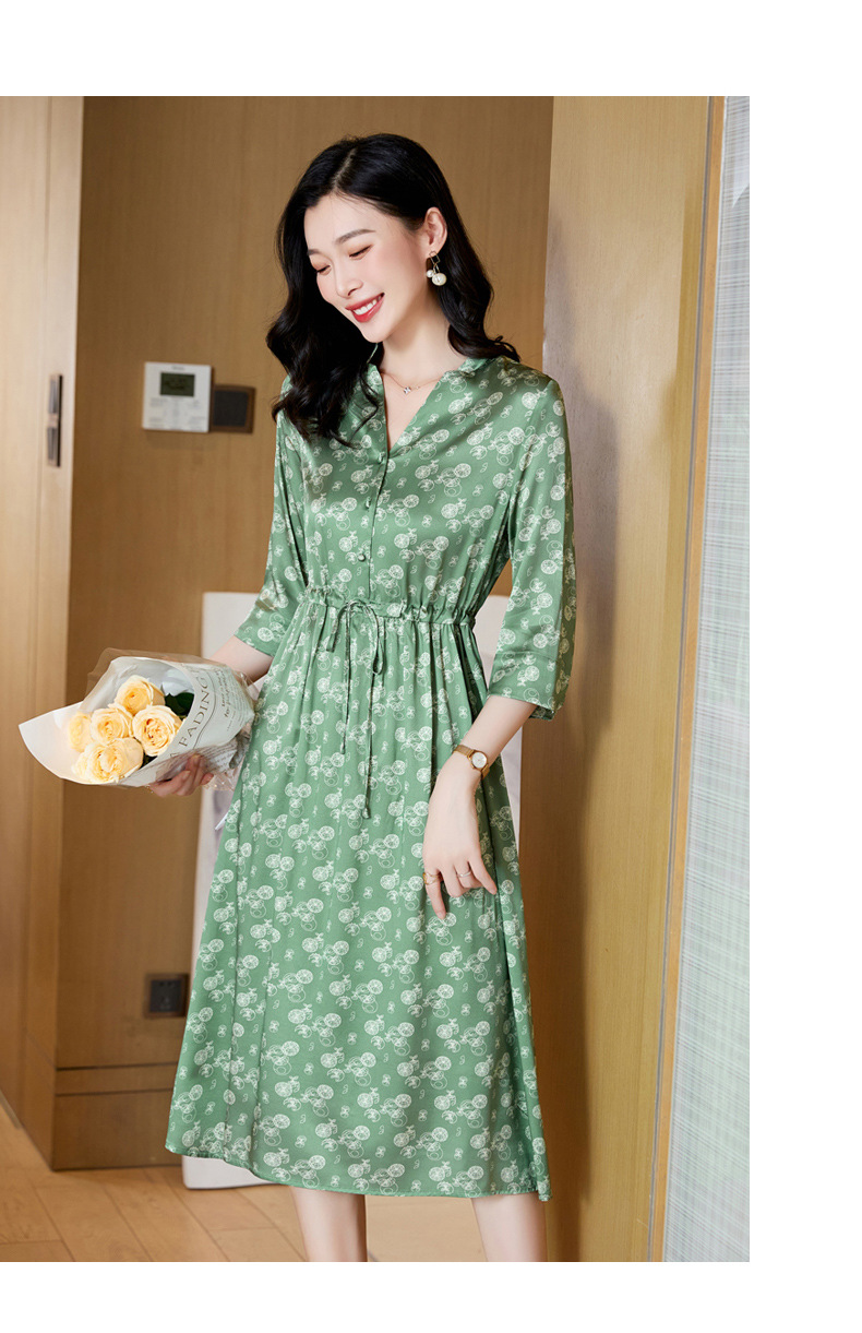 ASE-23068印染V领气质百搭时尚真丝连衣裙
