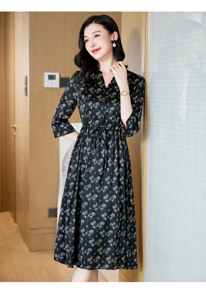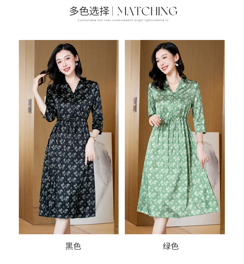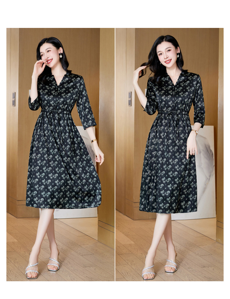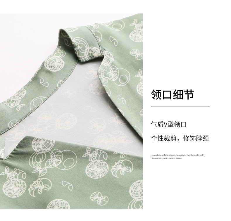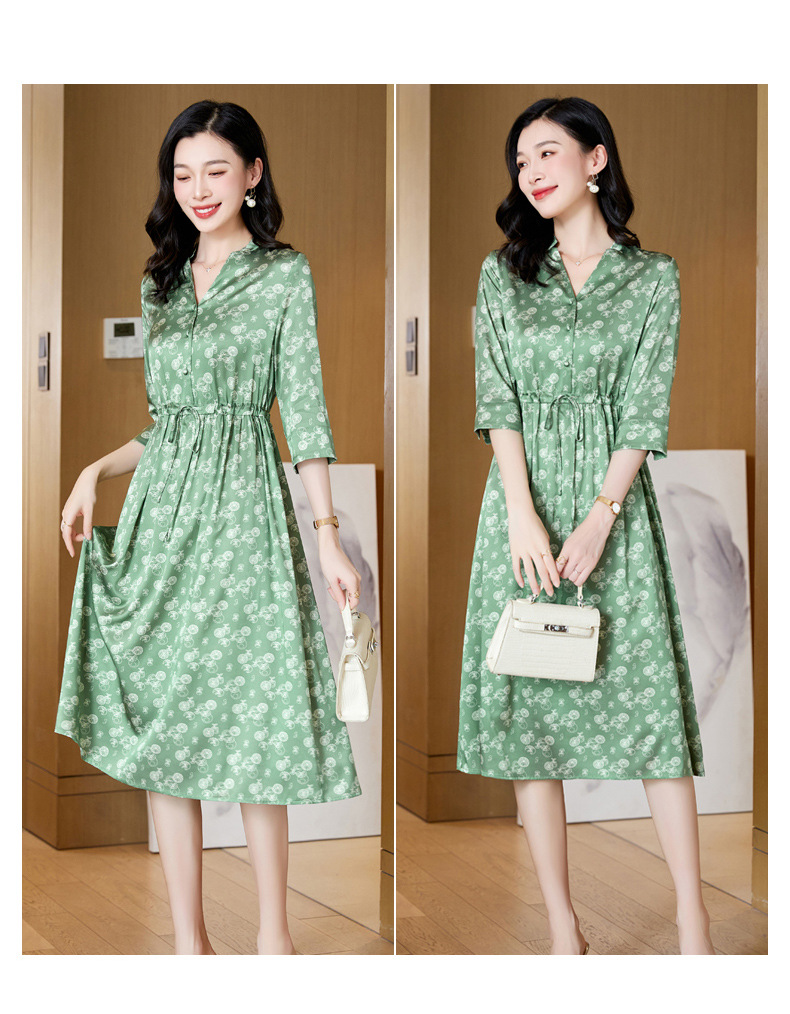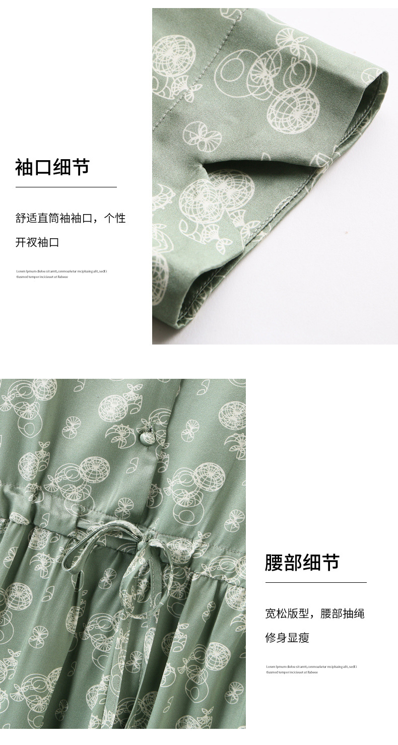 ASE-23068印染V领气质百搭时尚真丝连衣裙