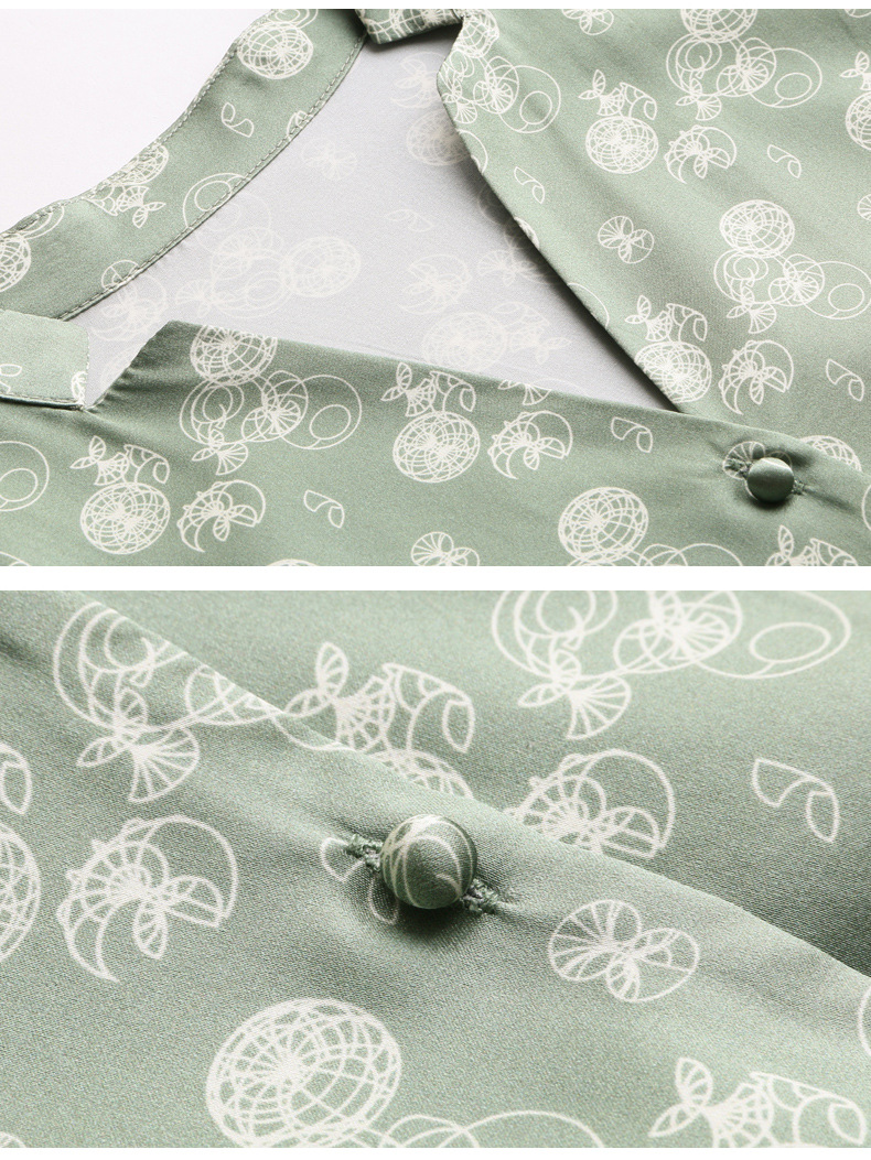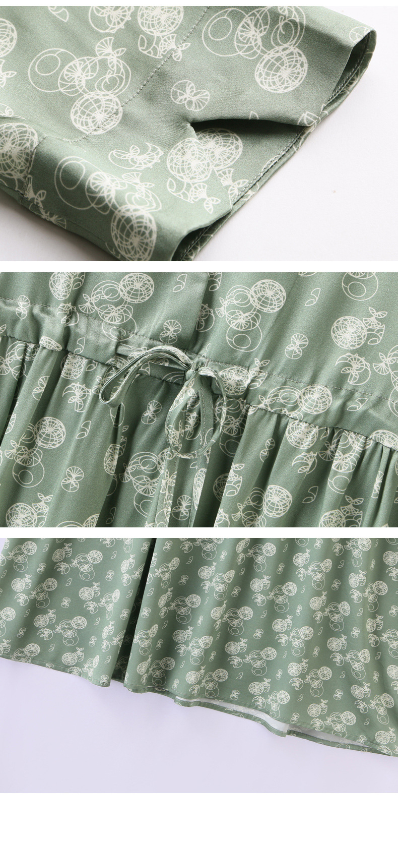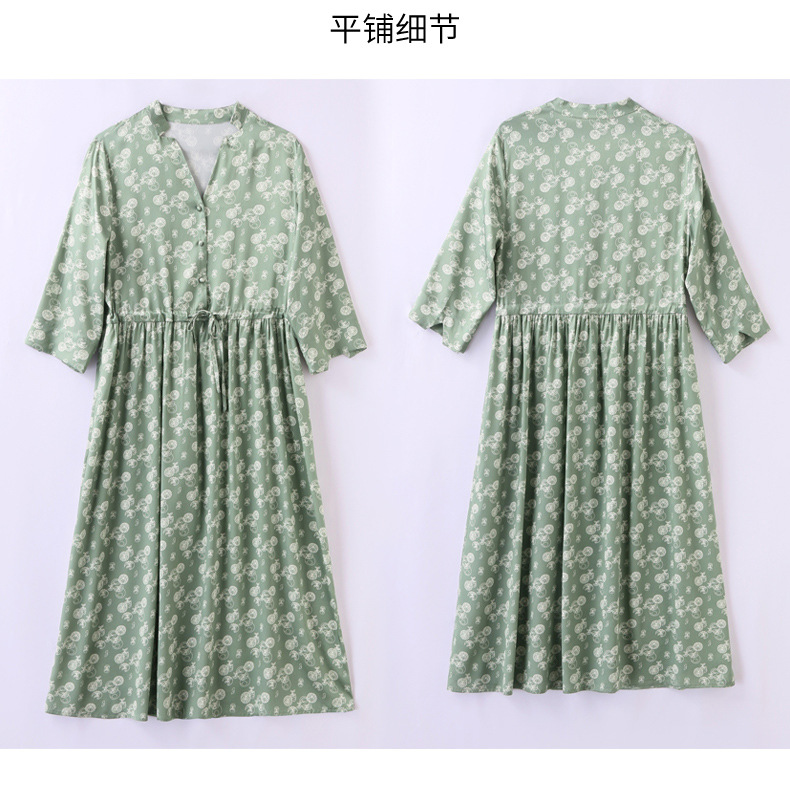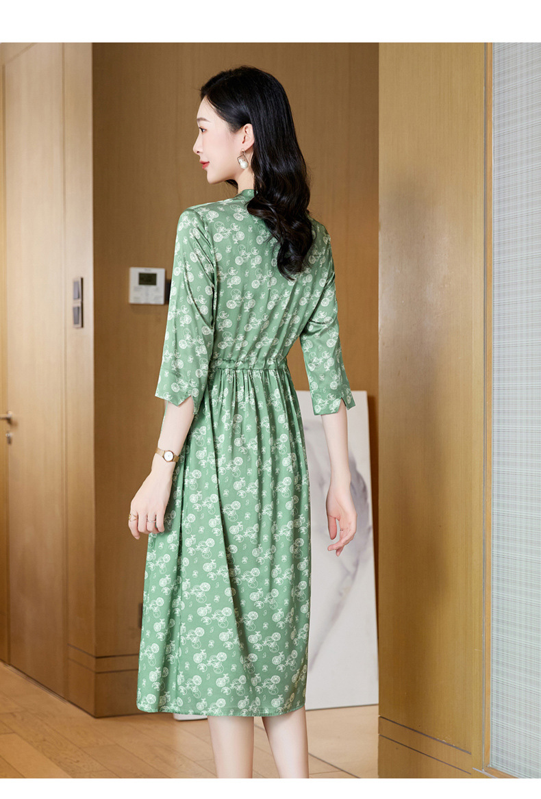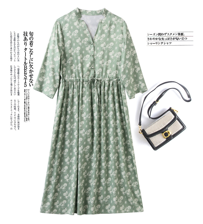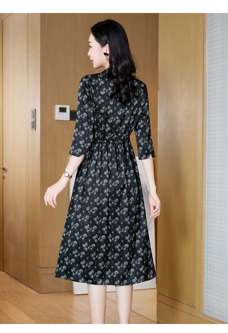 ASE-23068印染V领气质百搭时尚真丝连衣裙