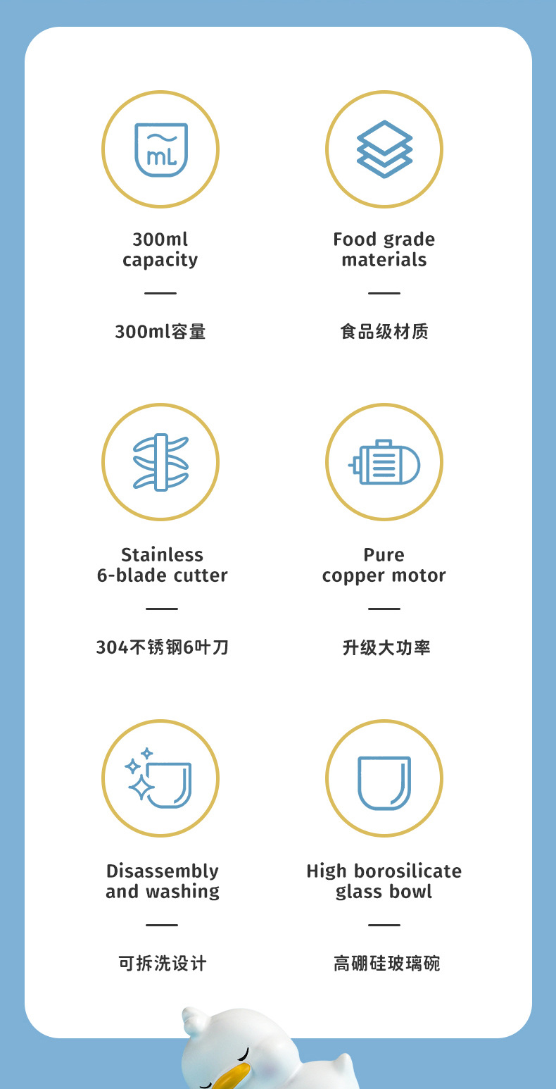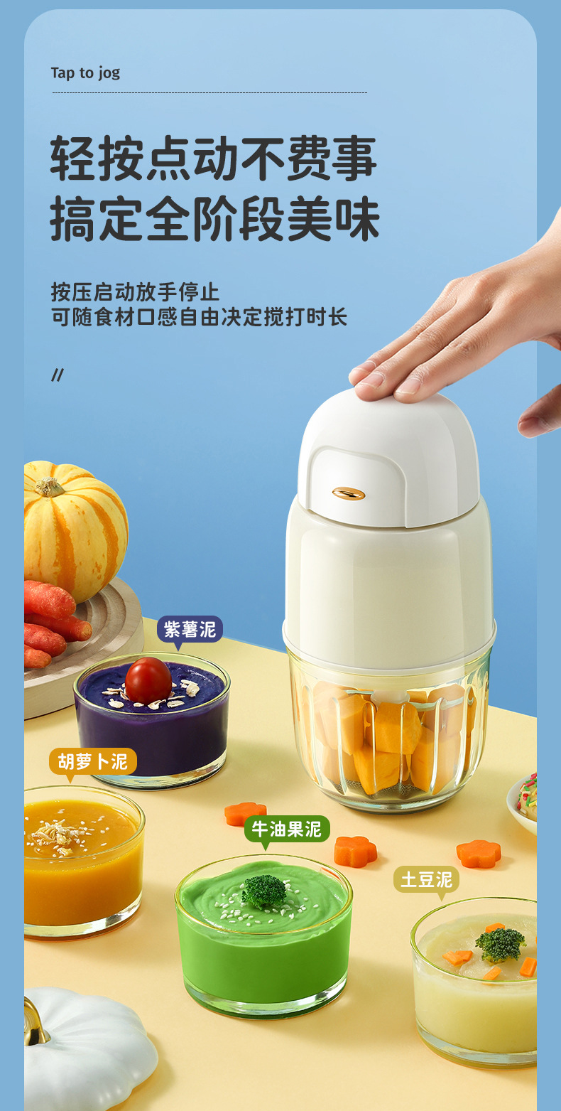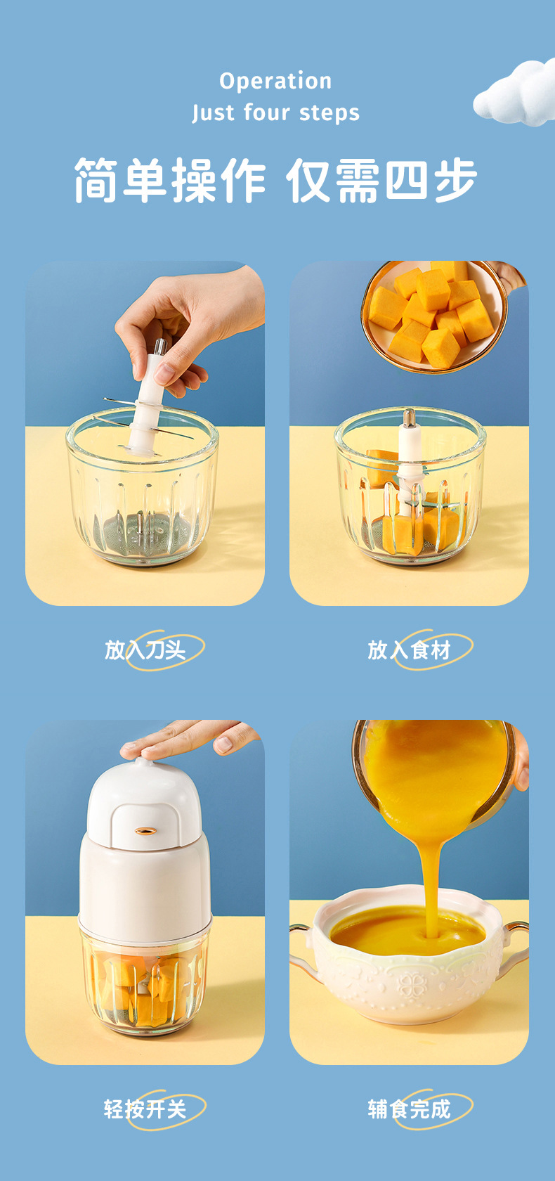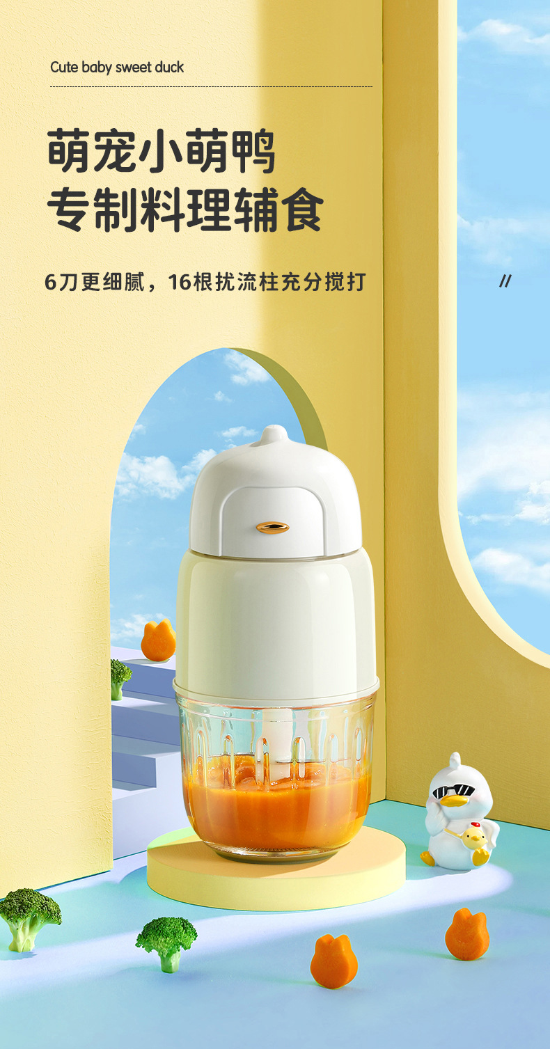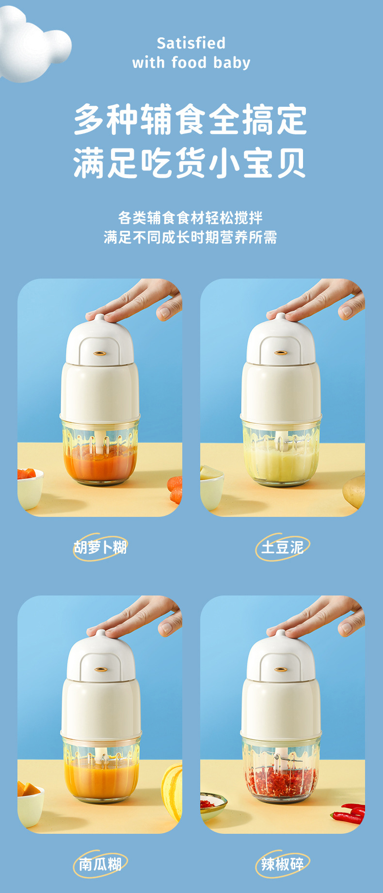 【萌宠小萌鸭 专制料理辅食】婴儿辅食机 小型多功能打泥绞肉 迷你电动 宝宝料理神器-QQ