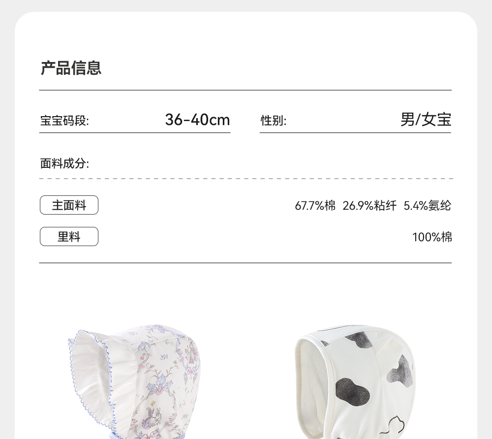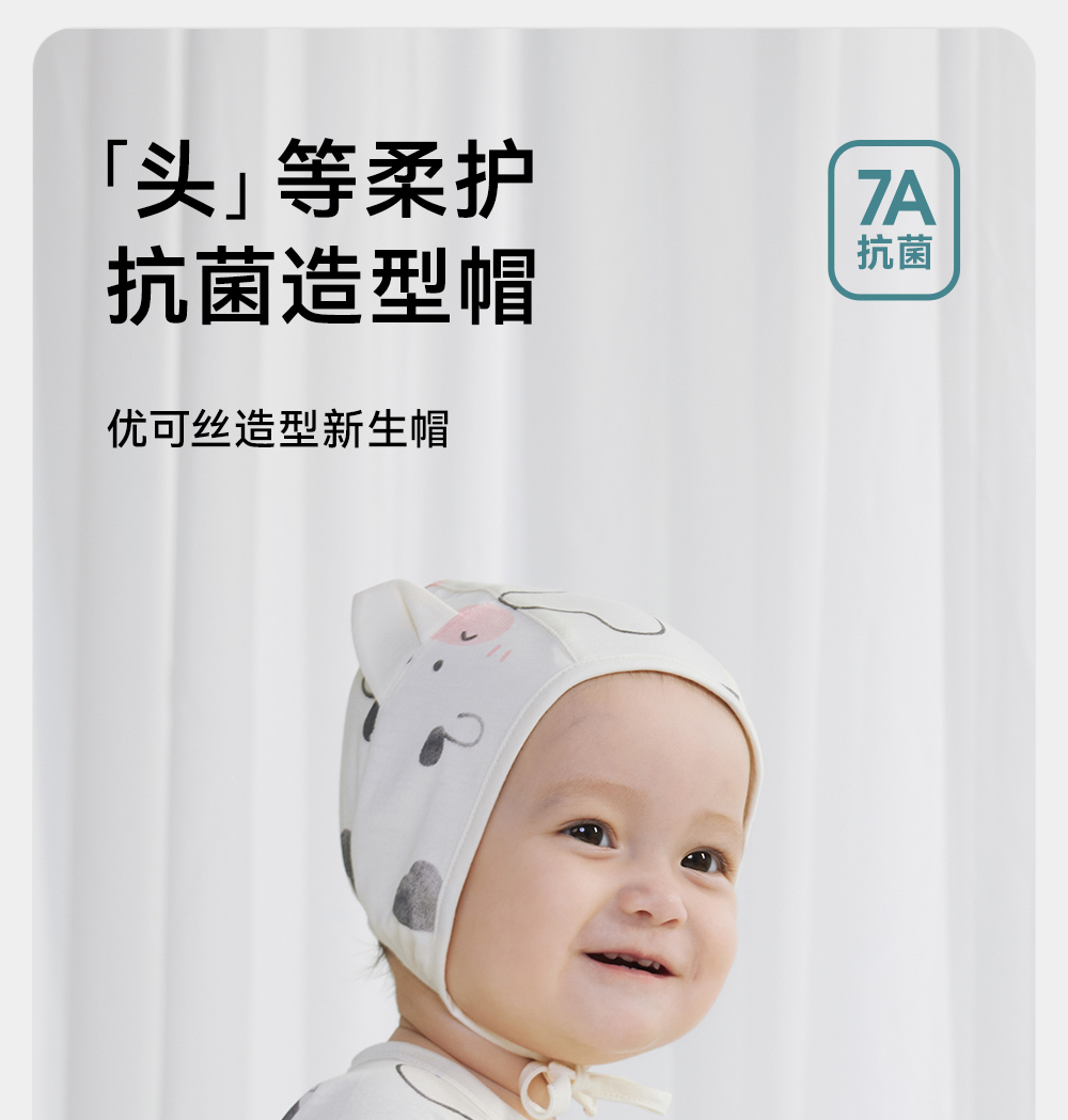英氏【优可丝】7A抑菌婴儿帽子新生儿胎帽男宝女宝帽子四季帽新款宝宝帽子